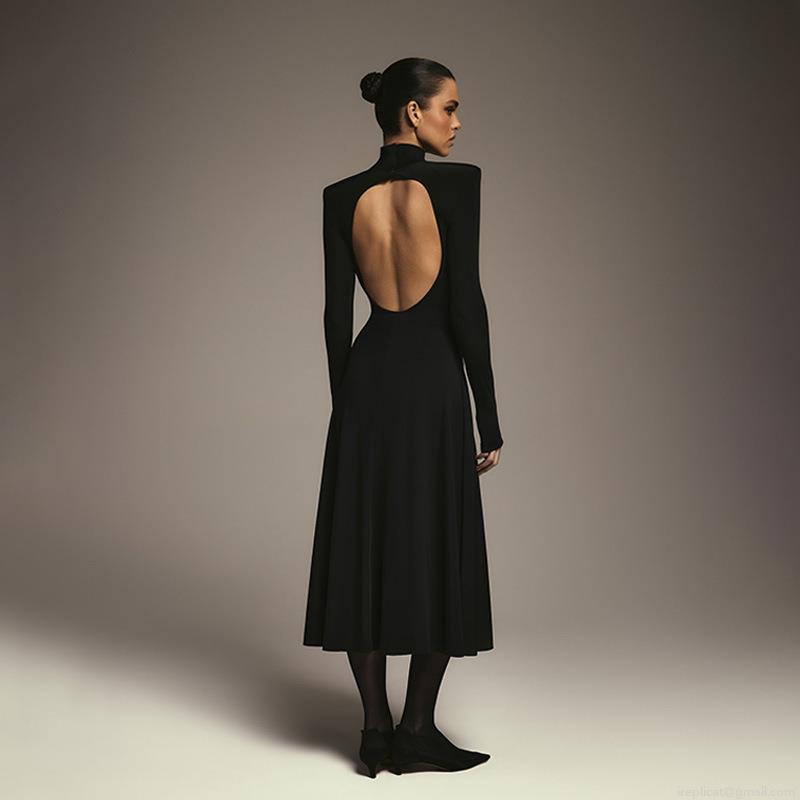 • Elegant Mock Neck Long Sleeve Backless Maxi Dress For Women Sexy Padded Shoulder Slim Fit A-Line Pure Color Polyester Spandex Blend Autumn Winter Evening Party Dress