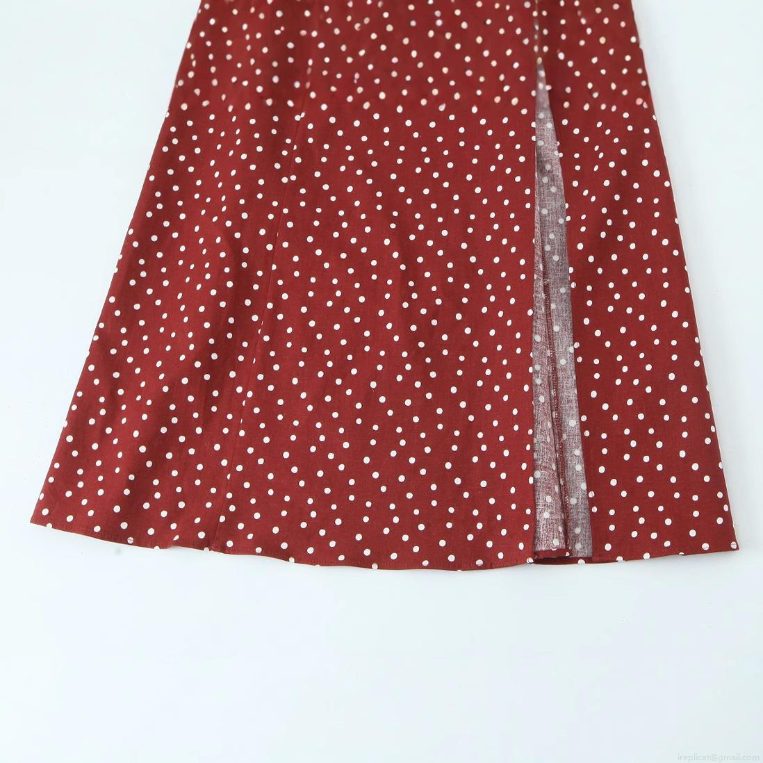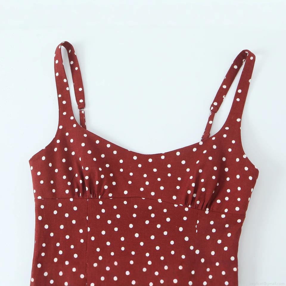 • Elegant Polka Dot Camisole Slit Maxi Dress For Women Summer V-Neck Sleeveless Socialite Style Polyester Long Dress Sexy Backless Evening Party Wear