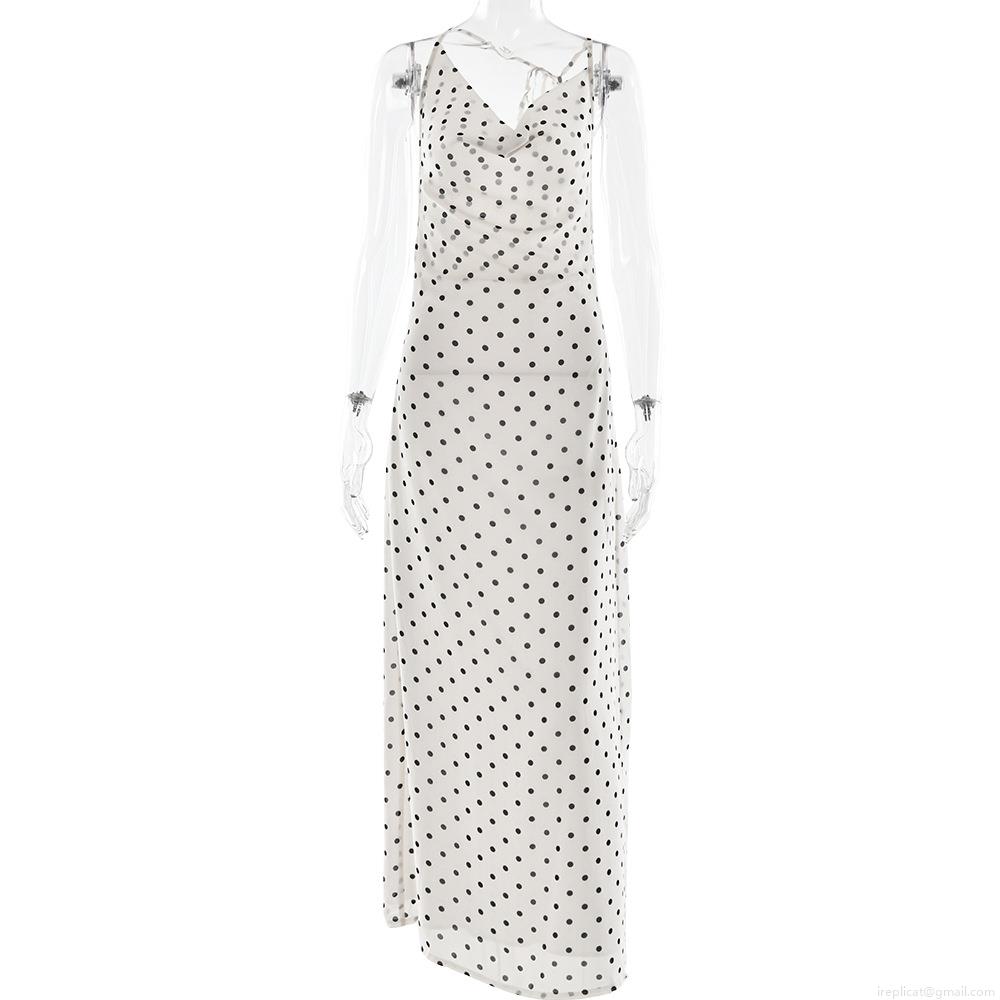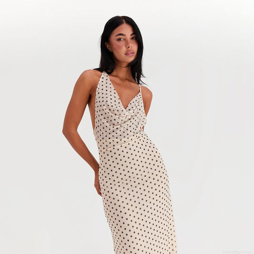 • Elegant Polka Dot Cowl Neck Camisole Dress Backless Chiffon Maxi Dress For Women Summer Sexy Streetwear Party Evening Long Dress