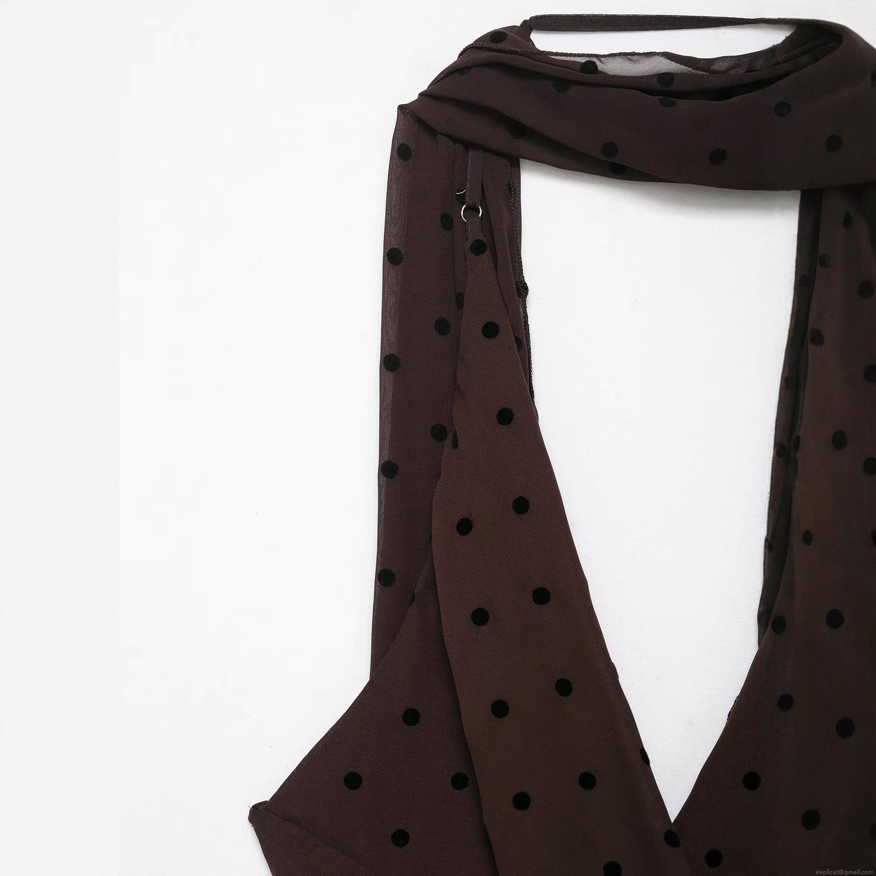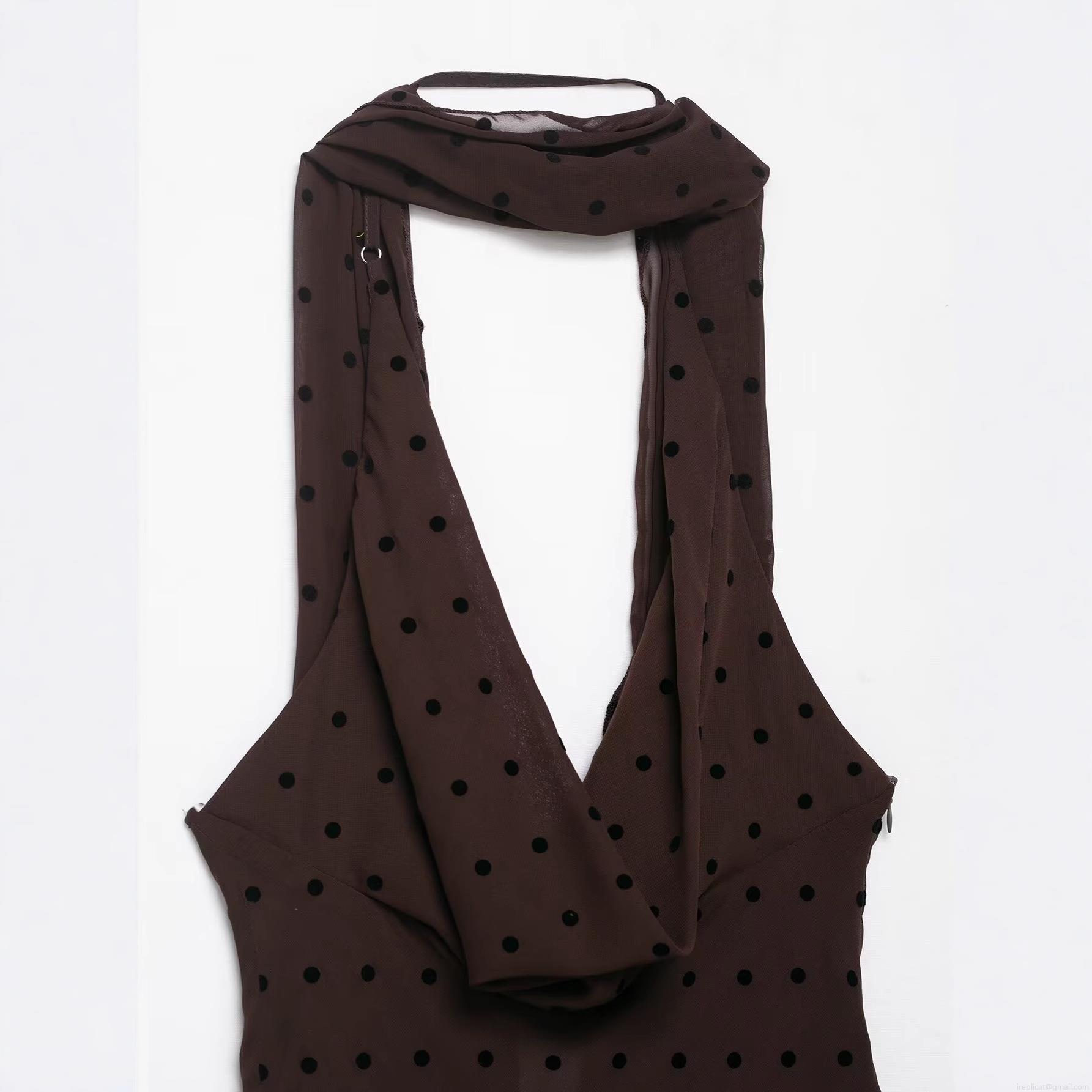 • Elegant Polka Dot Maxi Dress French Vintage Halter Backless Scarf Neck 100% Polyester Sleeveless Party Long Dress For Women