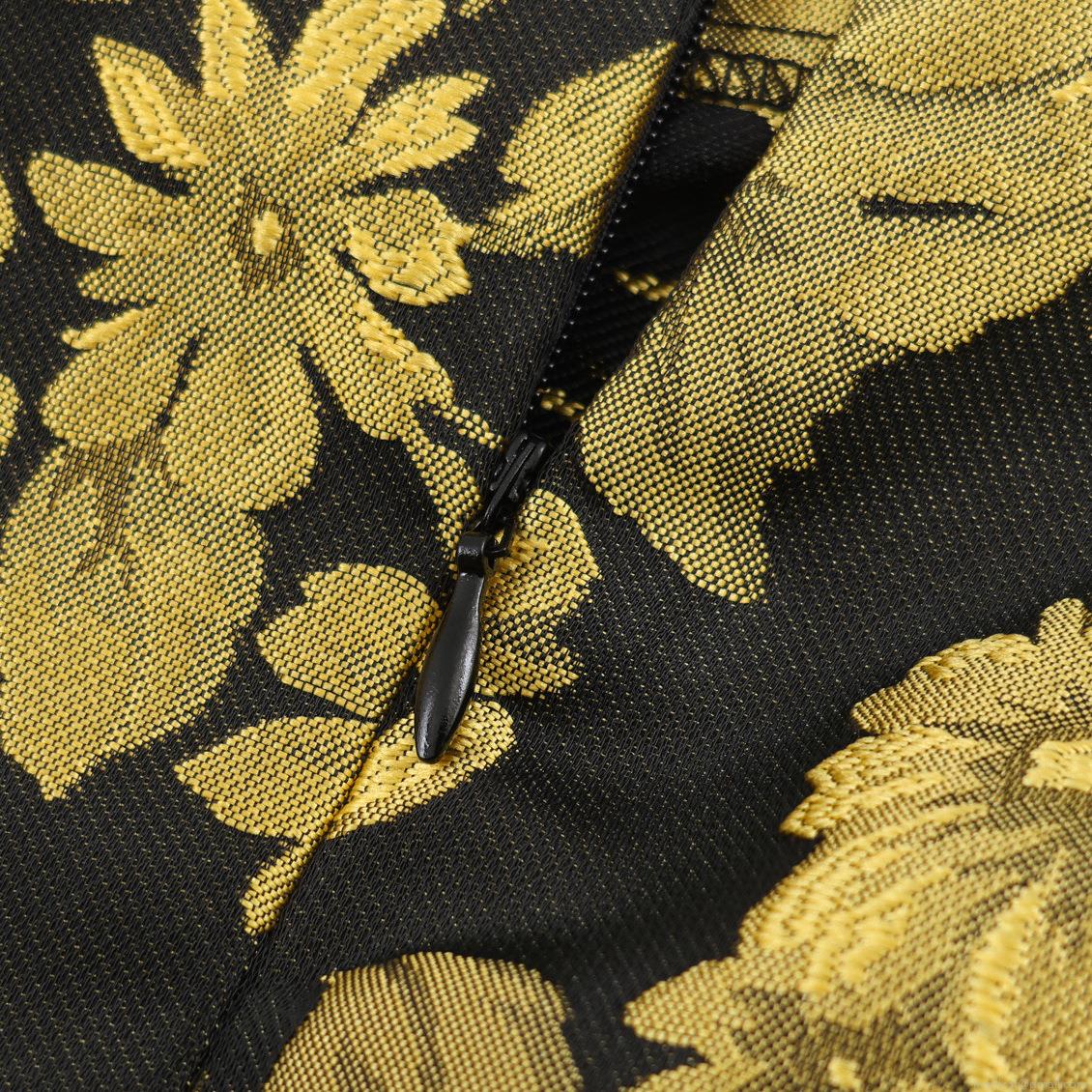Jacquard, Pleats, Big Swing, High-waisted, Gold Flower