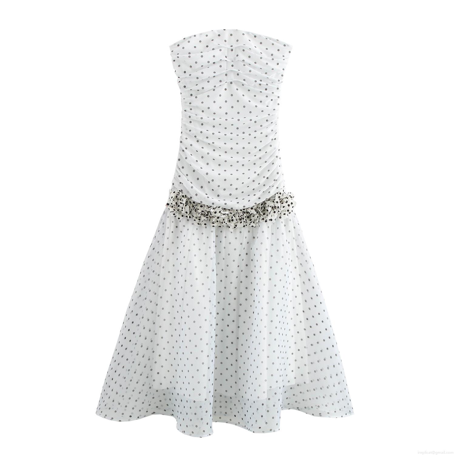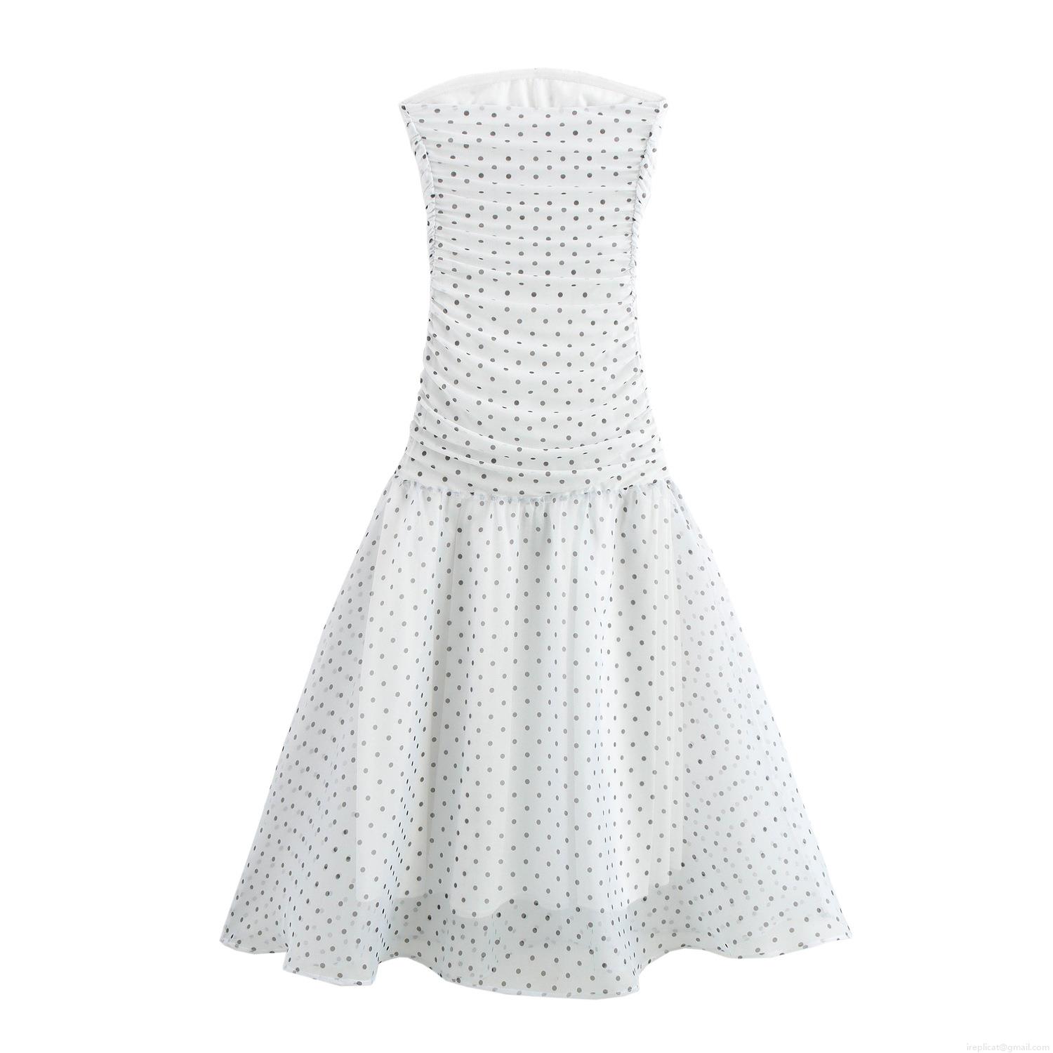 • Elegant Retro Women's Polka Dot Strapless Maxi Dress Sexy Bodycon Mesh Ruffled Party Dress White Black Dot Summer Evening Long Dress