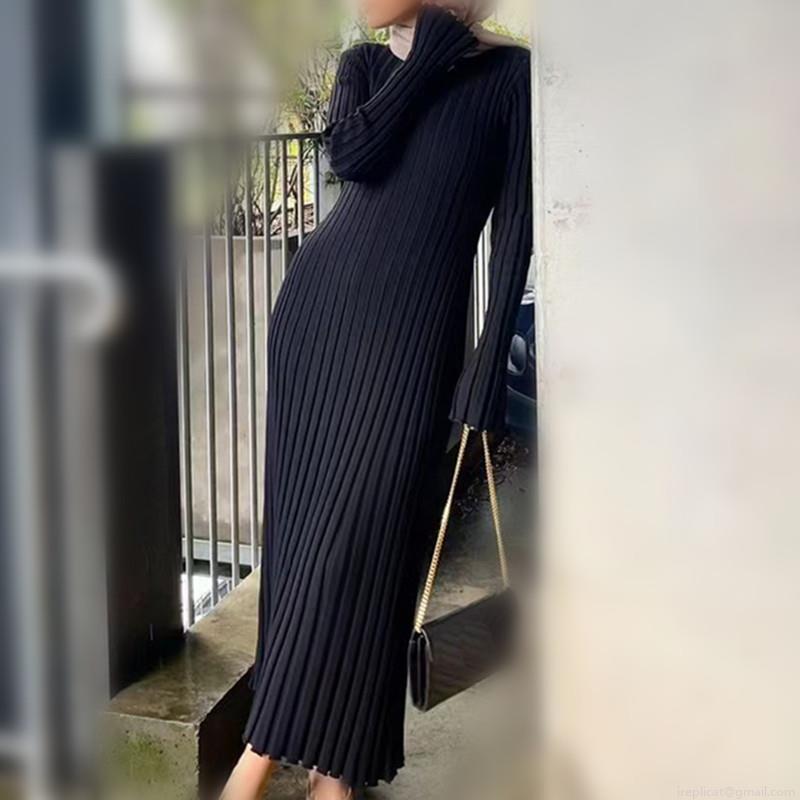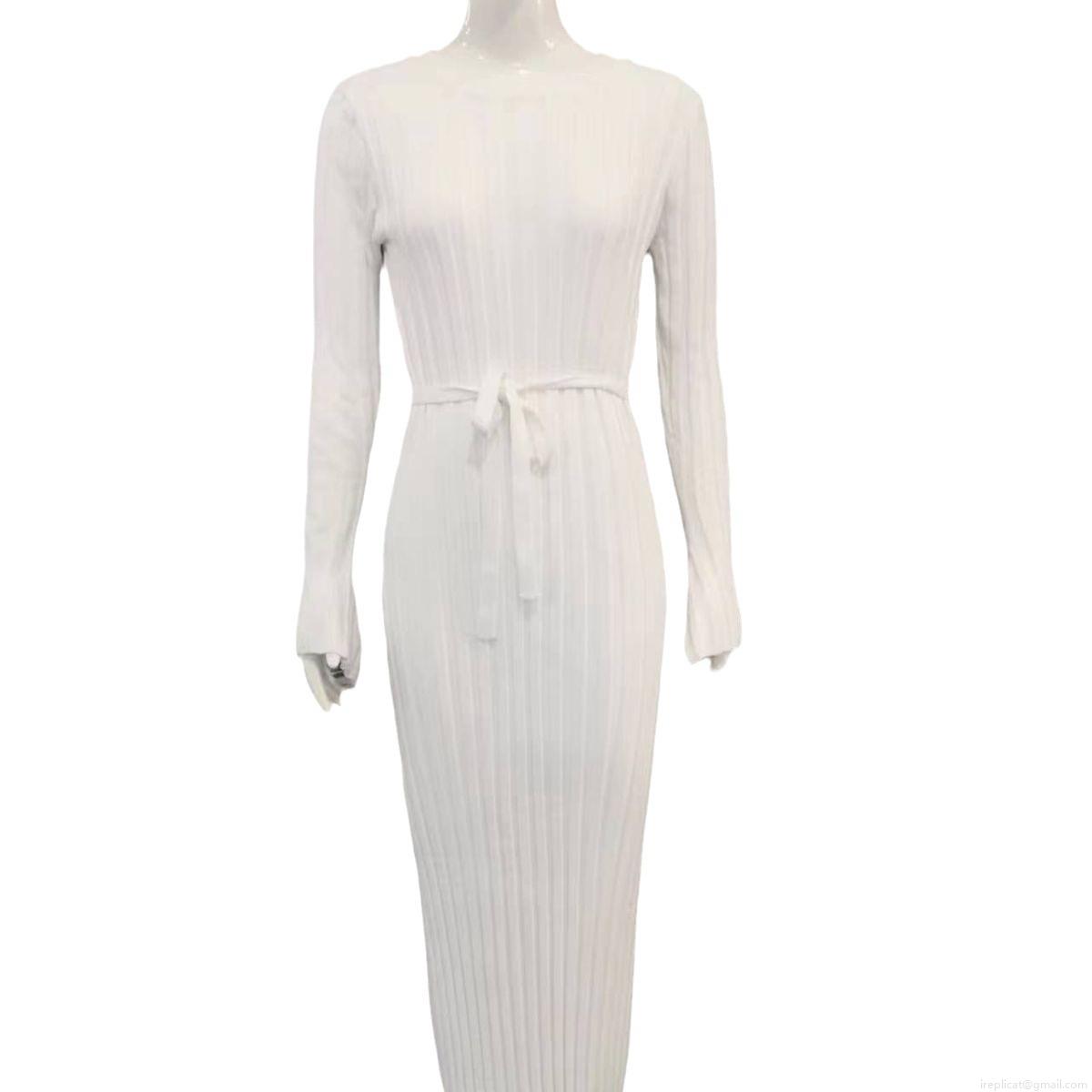 • Elegant Ribbed Knit Maxi Dress Women Round Neck Long Sleeve Slim Fit Tie-Waist Autumn Winter Casual Solid Color Polyester Knitted A-Line Sweater Long Dress For Office Lady Party Gown