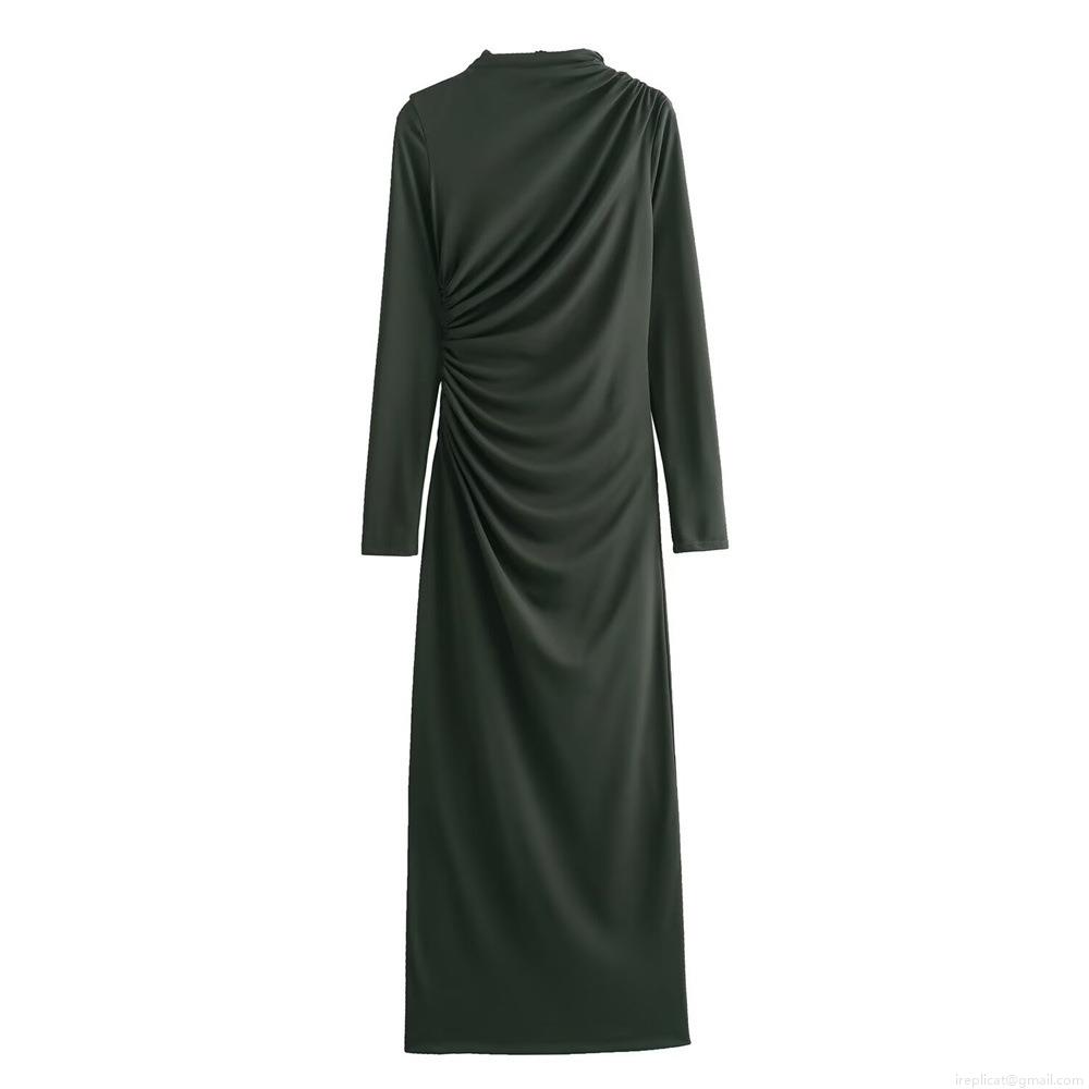 • Elegant Ruched Bodycon Maxi Dress Women Sexy Long Sleeve High Neck Slim Fit Polyester Evening Party Clubwear Gown
