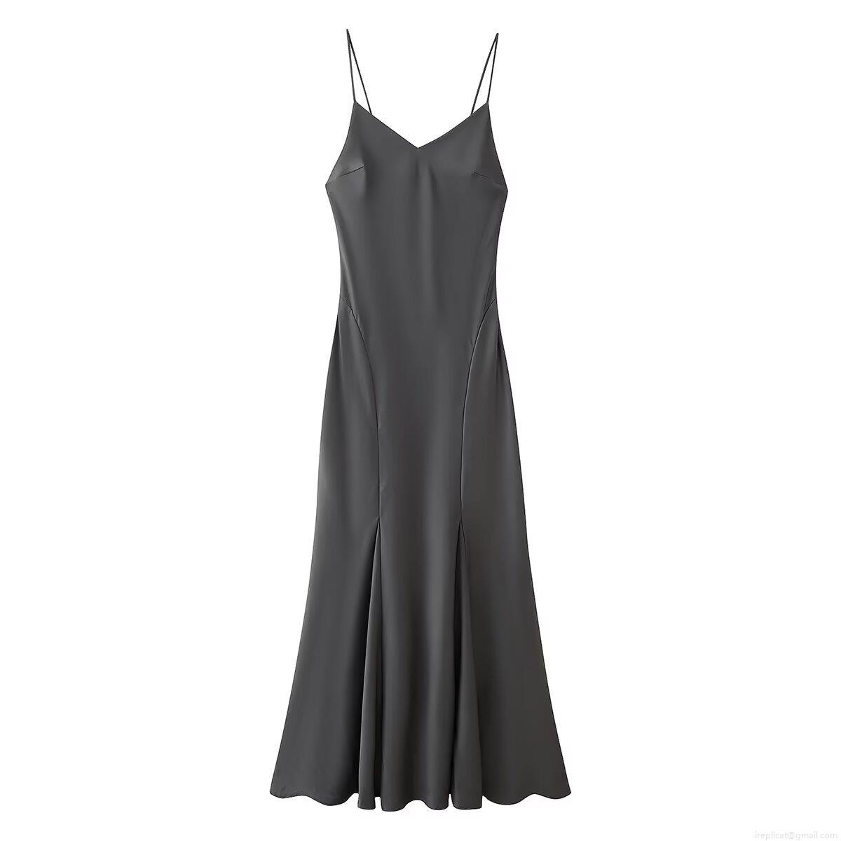 • Elegant Satin V-neck Sleeveless Backless Slip Dress Solid Color Mermaid Long Evening Party Dress for Women Celebrity Style Wedding Guest Maxi Dress