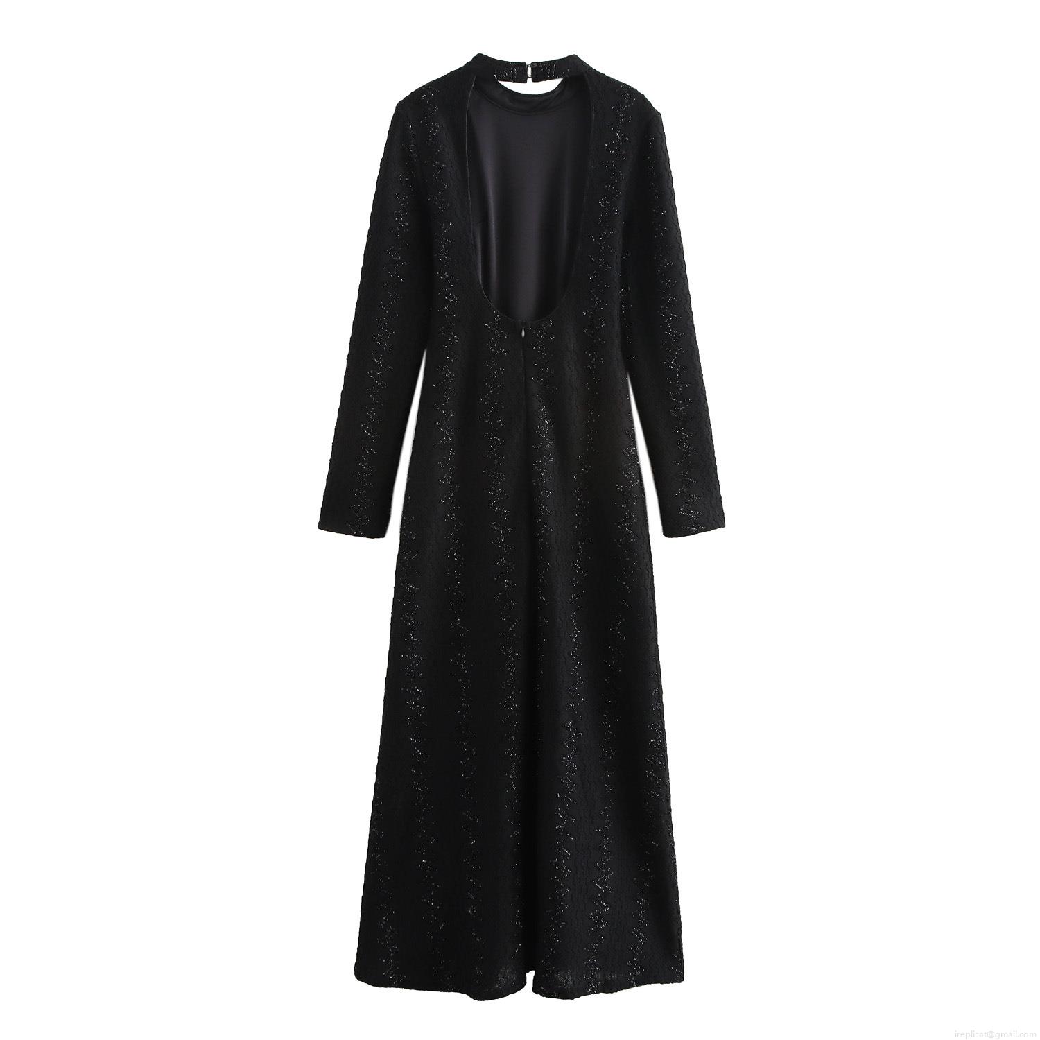 Elegant Sexy Backless Maxi Dress Women's Slim Fit Mock Neck Long Sleeve Sequin Knit Polyester Long Gown For Banquet Evening Party Wedding