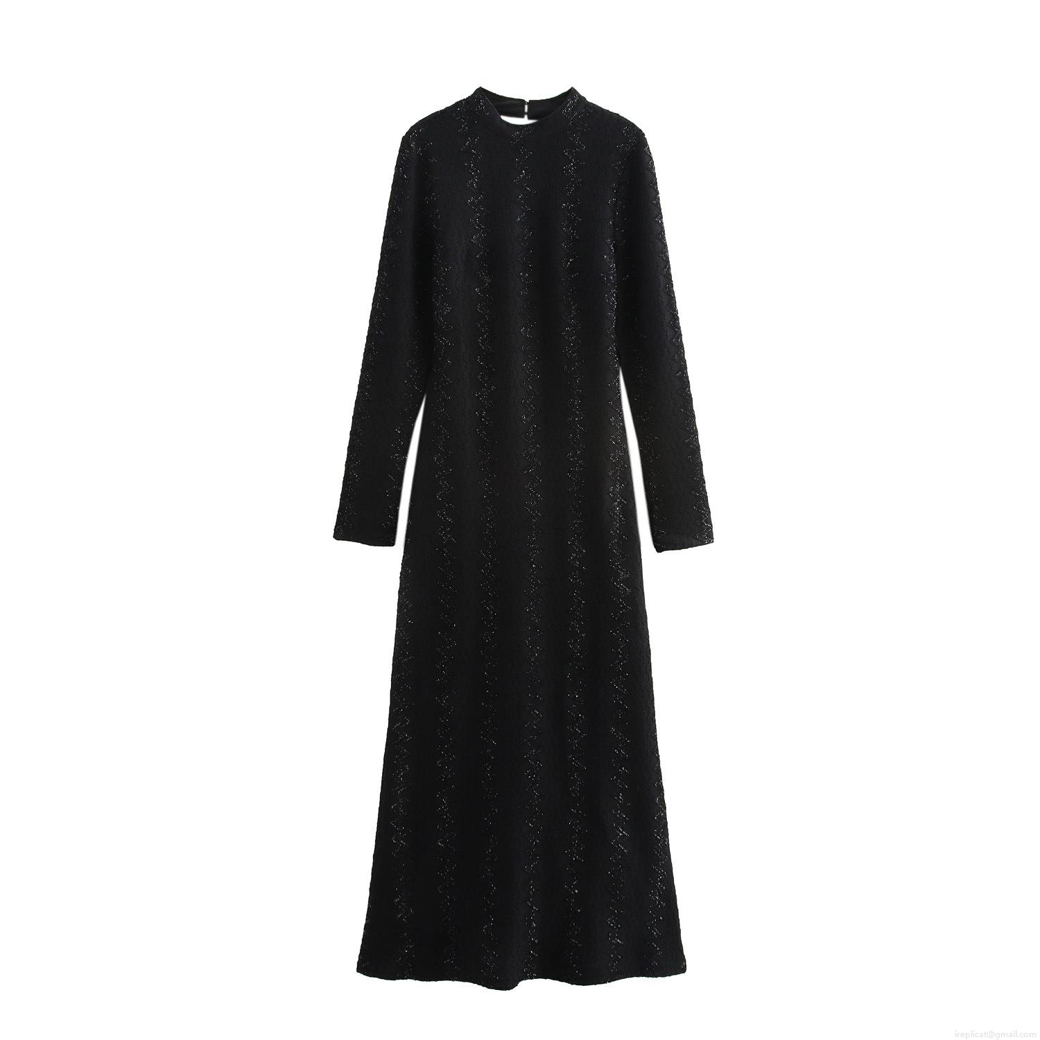 • Elegant Sexy Backless Maxi Dress Women's Slim Fit Mock Neck Long Sleeve Sequin Knit Polyester Long Gown For Banquet Evening Party Wedding