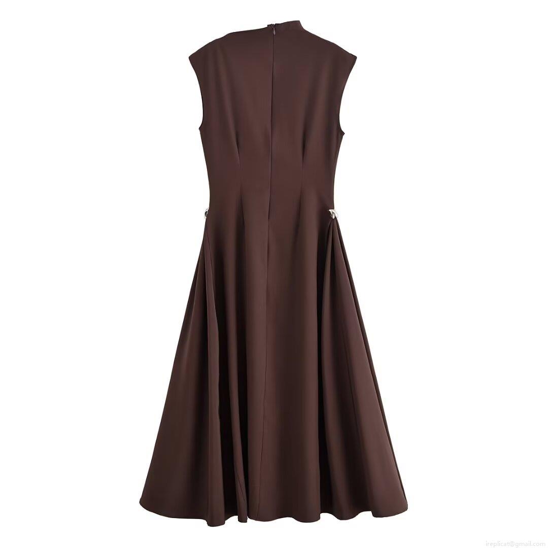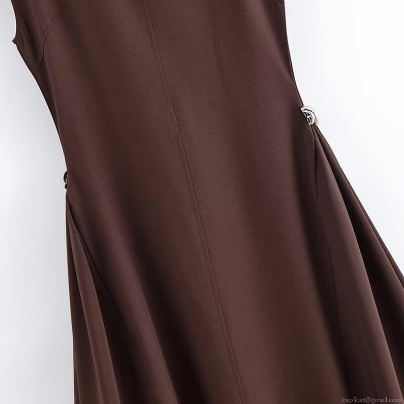 • Elegant Sleeveless Maxi Dress For Women High Waist A-Line Side Metal Buckle Drape Polyester Spandex Blend Long Dress For Party Office Casual