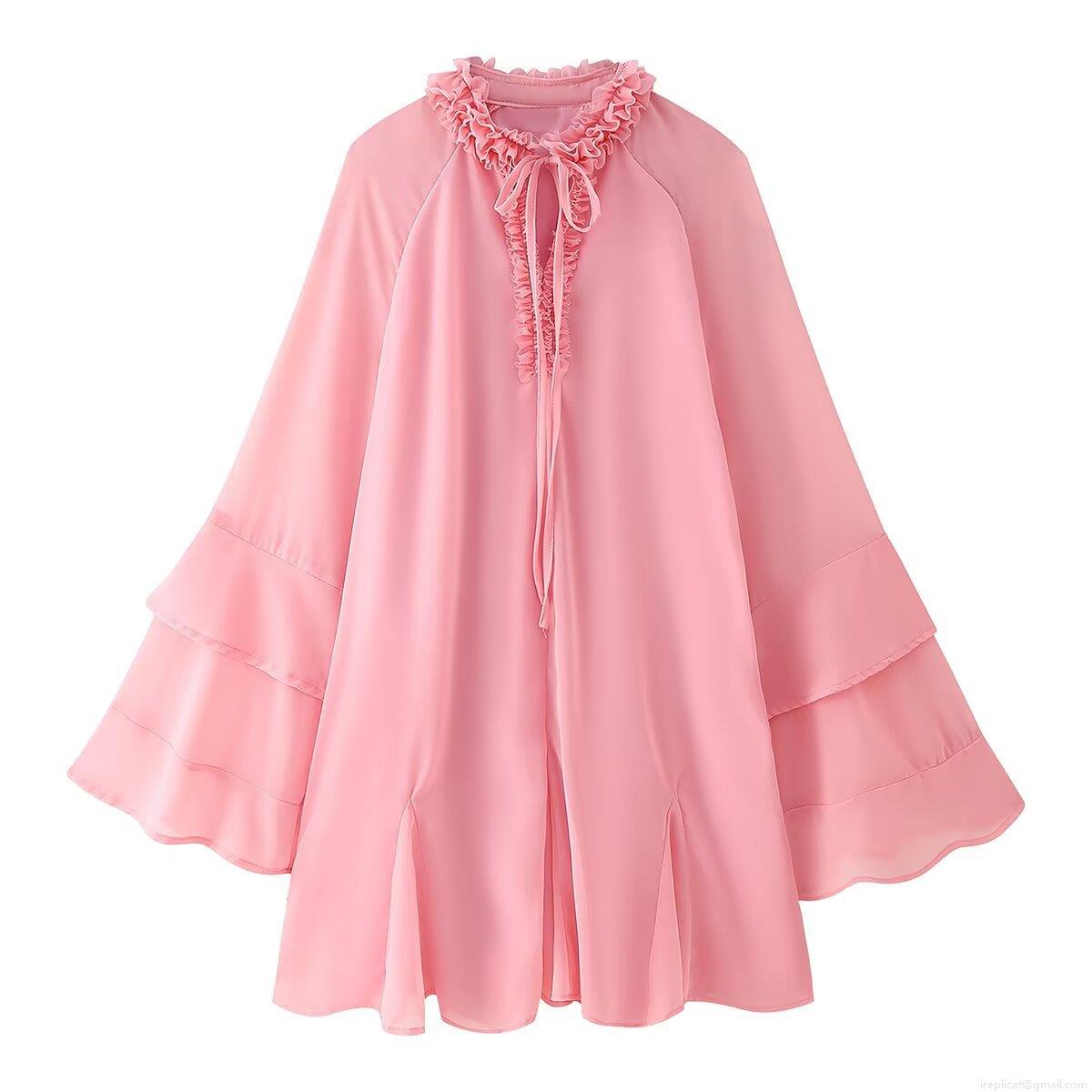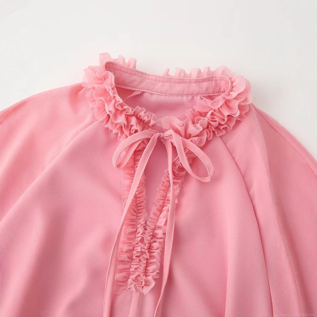 V-neck Opening, Three-layered Ruffled Bell Sleeves, Neck Tie Bow
