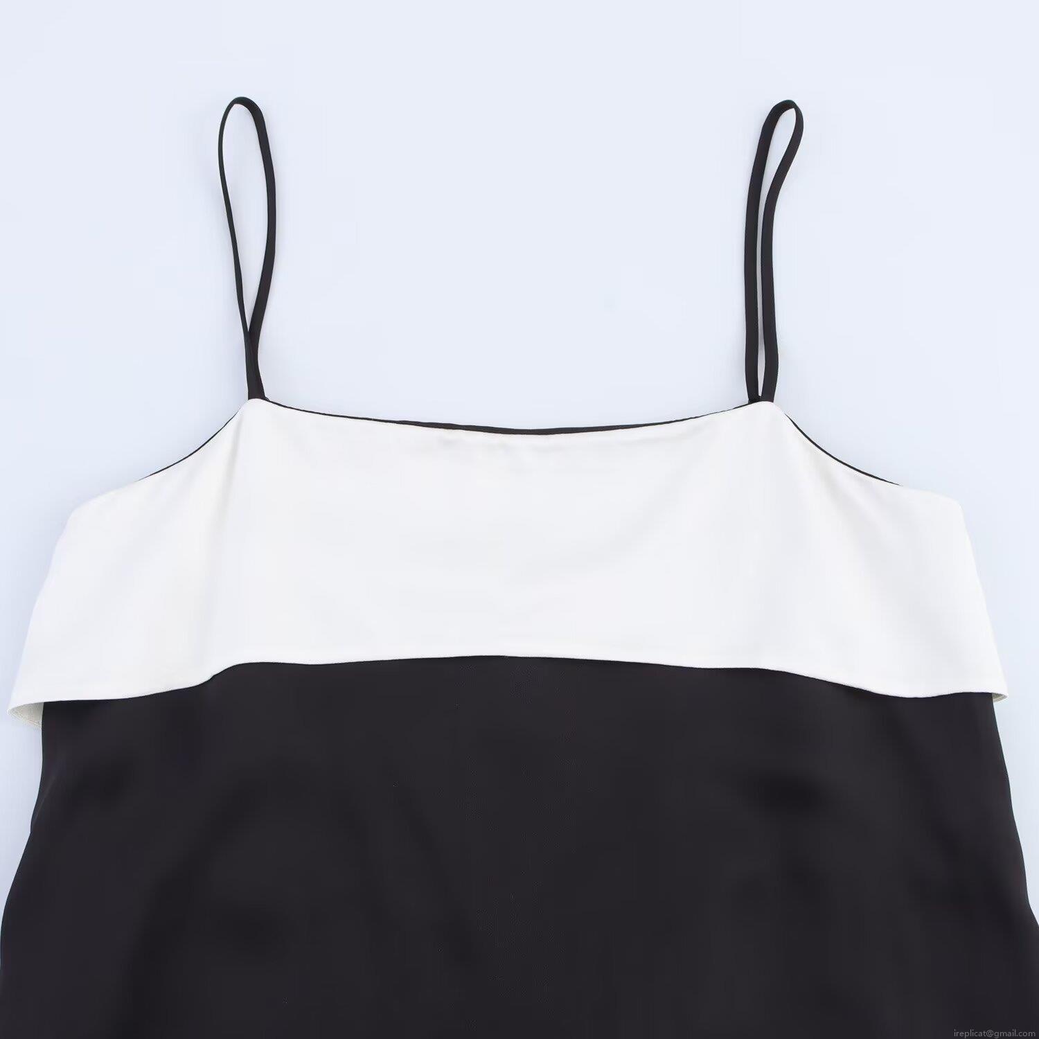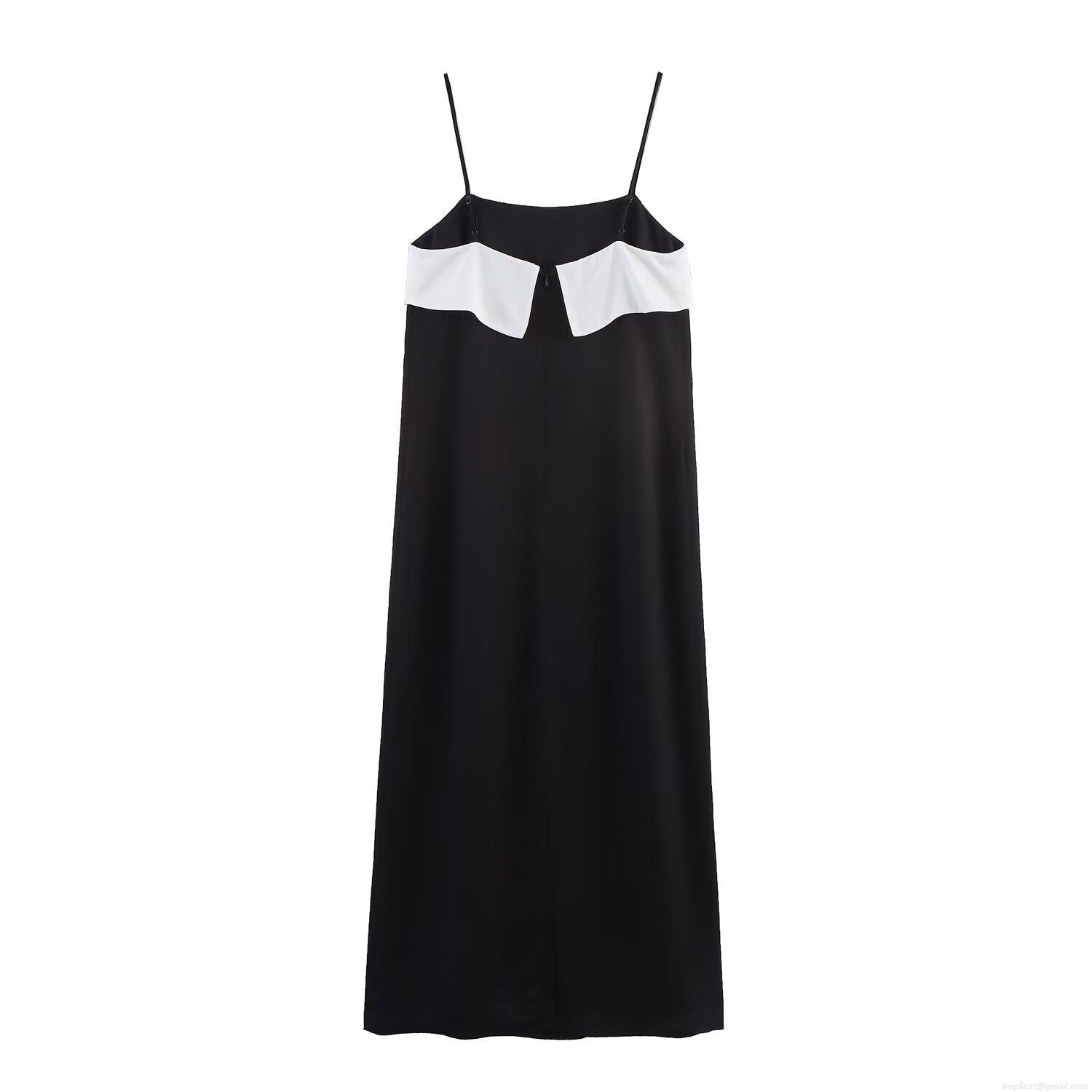 Elegant Spaghetti Strap Satin Maxi Dress Sexy Black and White Contrast Color Block Slim Fit Evening Party Wedding Guest Dress for Women