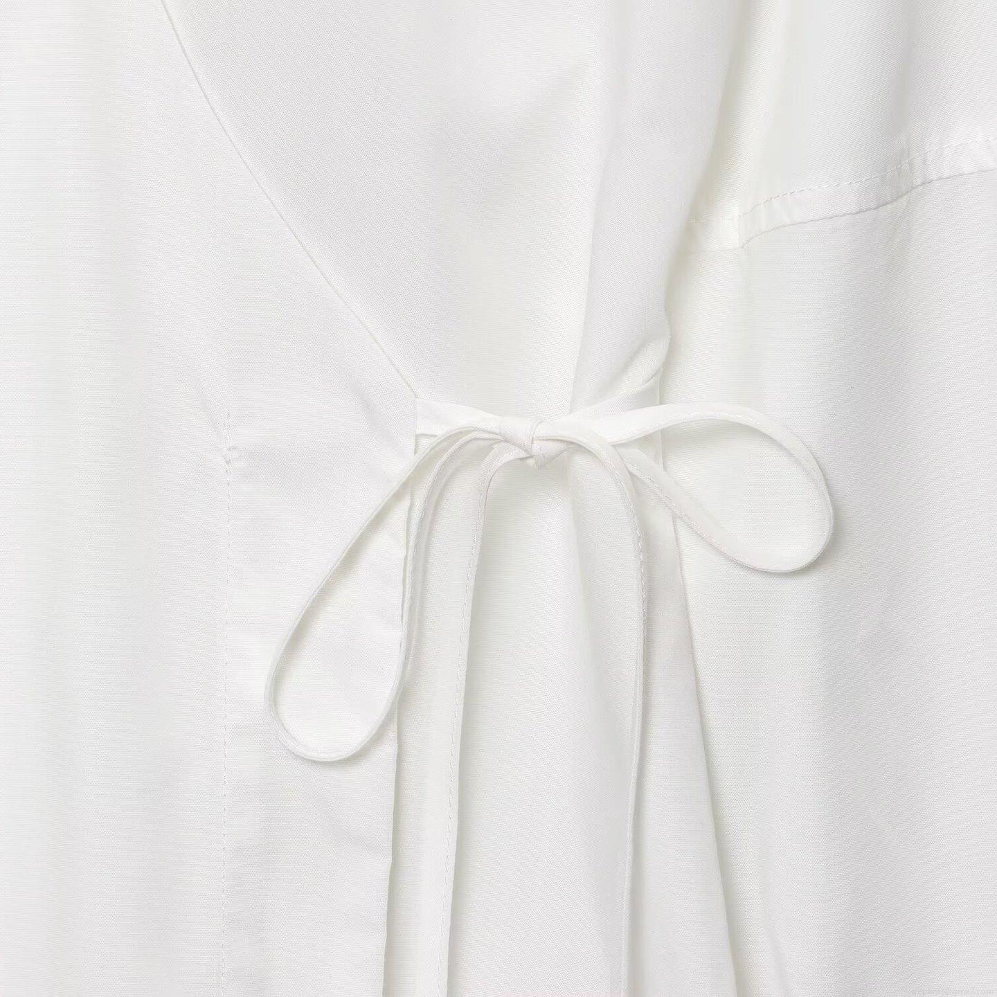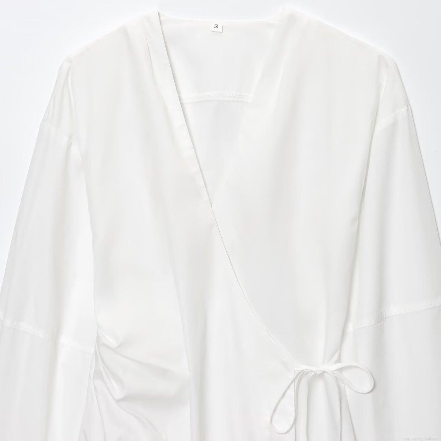 • Elegant V Neck Wrap Maxi Dress Women Long Sleeve Polyester Cotton Blend Plain Tie Waist Shirt Dress For Daily Casual Office Party