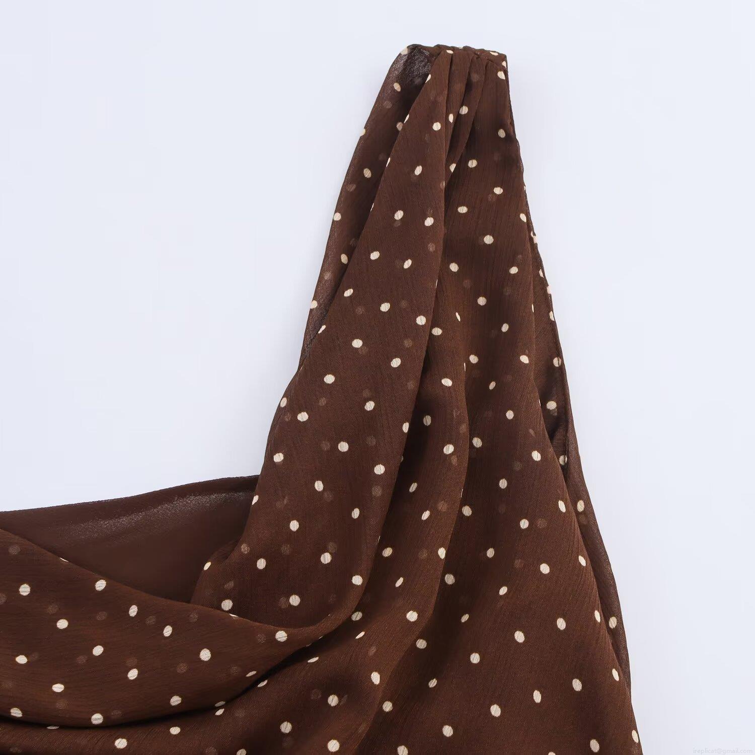 • Elegant Vintage Polka Dot Maxi Dress For Women One Shoulder Sleeveless Chiffon Draped Neck Evening Party Club Slim Fit Long Dress