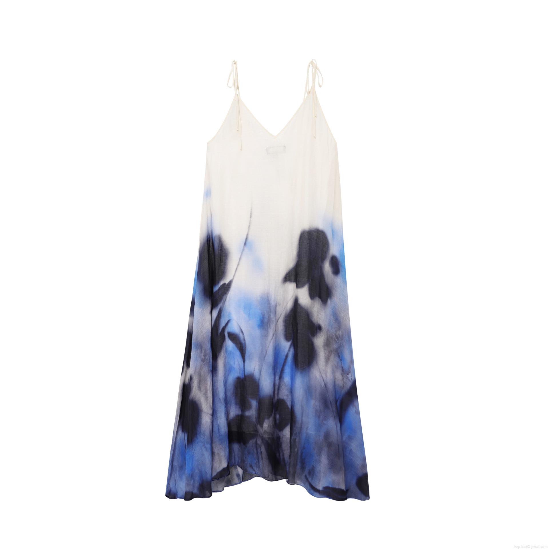Gradient, Printing, V-neck, Drape, Thin Shoulder Straps, Ink And Wash Tie-dye
