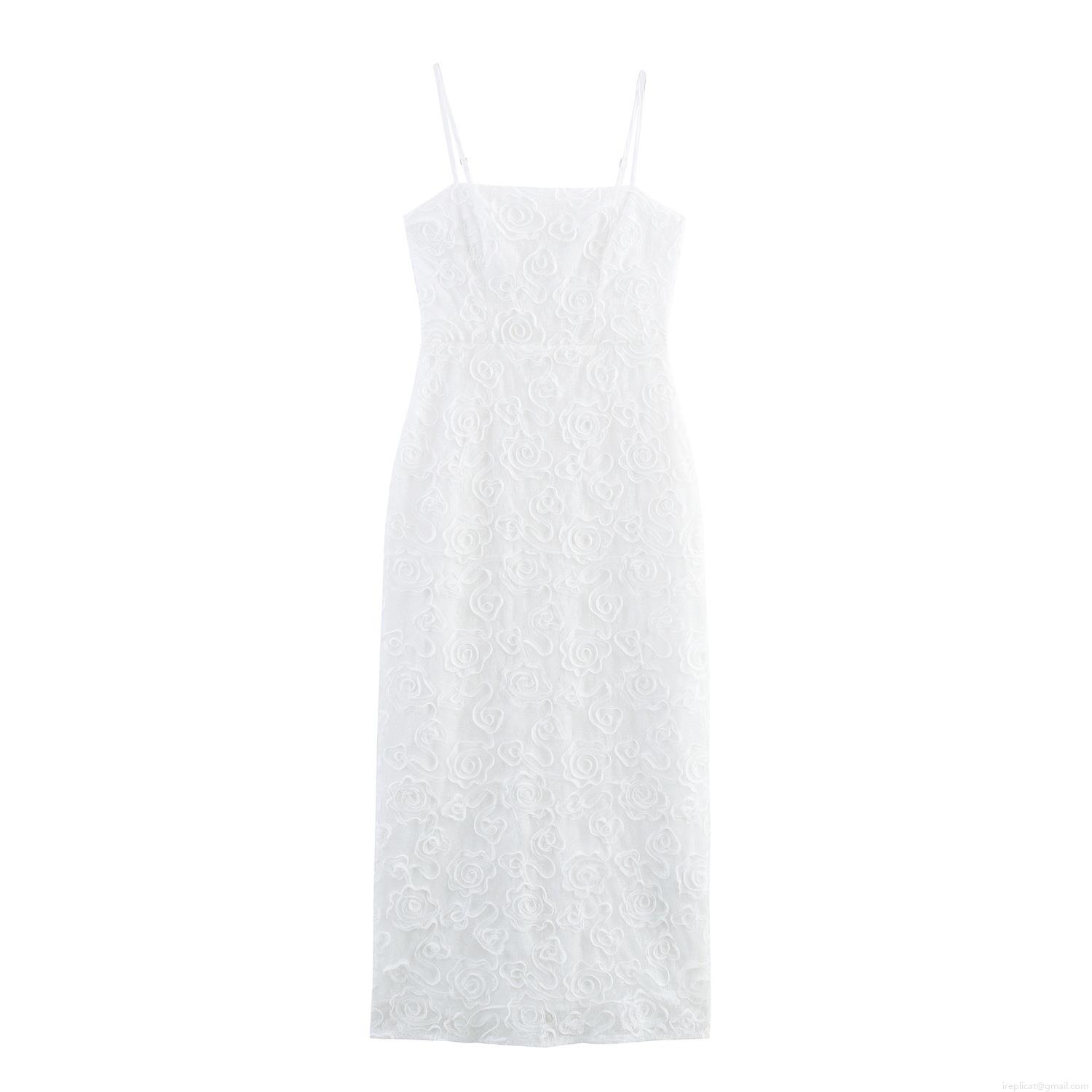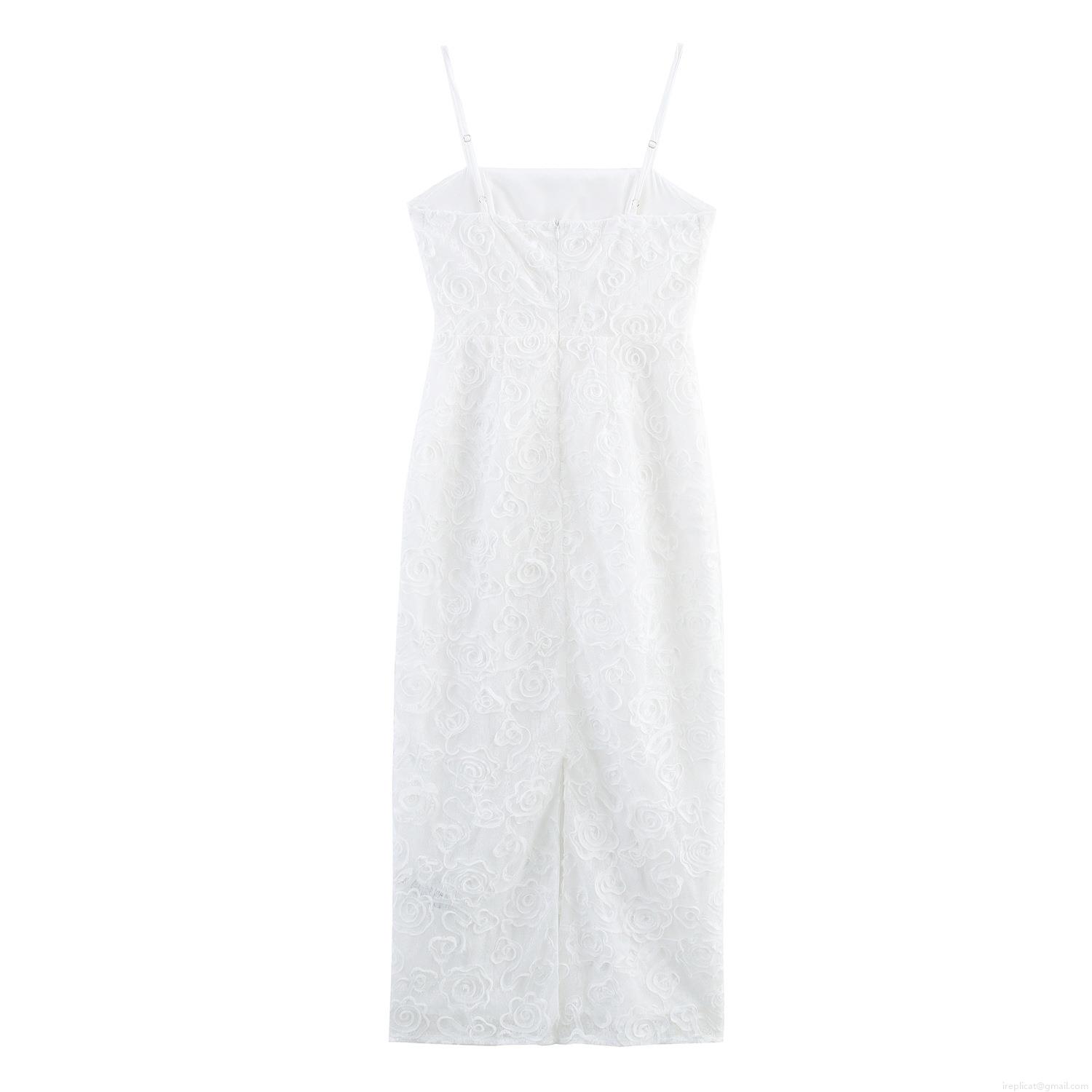 • Elegant White 3D Rose Flower Lace Maxi Dress For Women Sexy Spaghetti Strap Backless Bodycon Slim Long Evening Party Wedding Guest Dress Socialite Clubwear