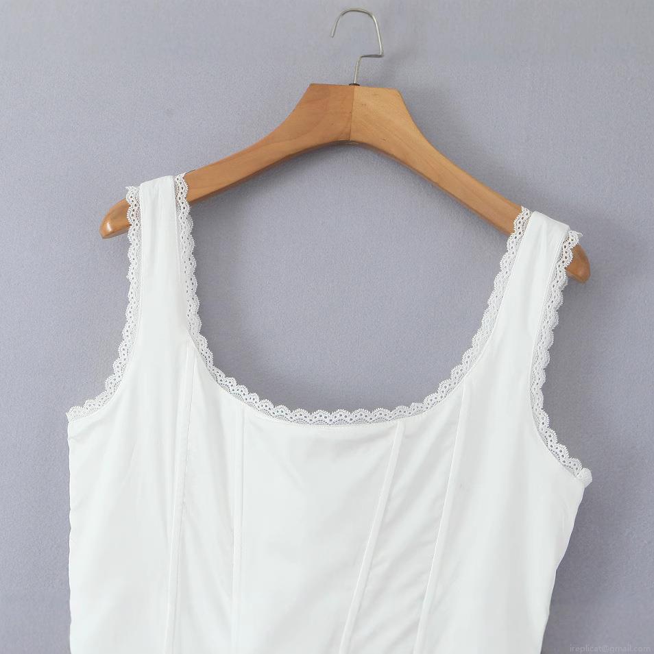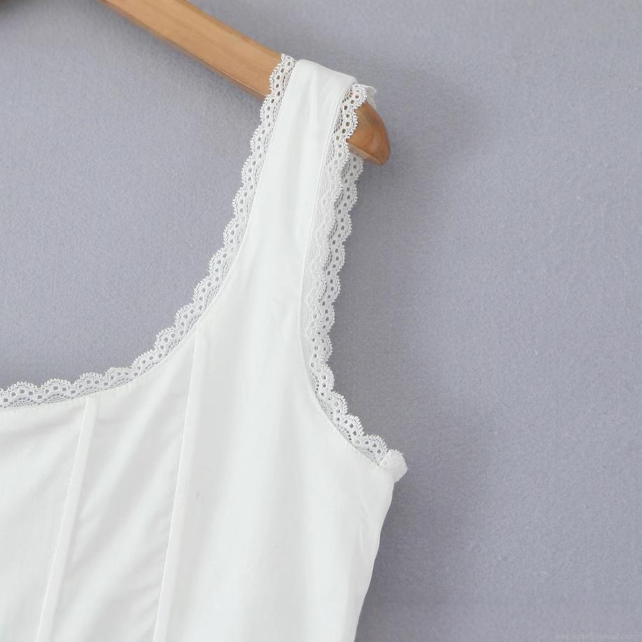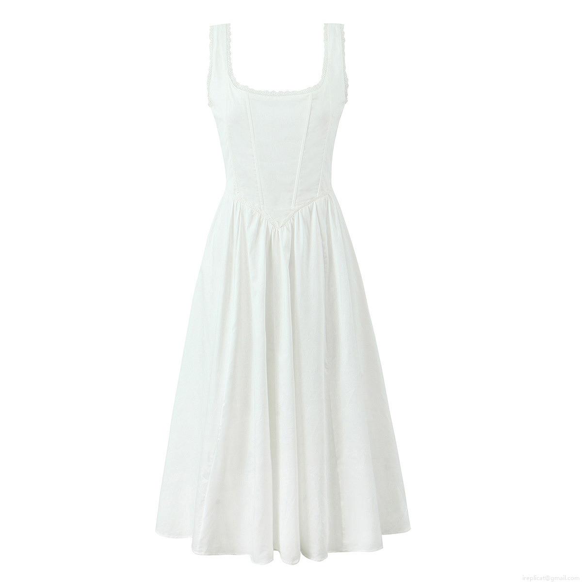 • Elegant White Sleeveless Maxi Dress For Women Lace Trim Square Neck Corset Lace-Up Back Polyester Long Sun Dress Party Vacation Dress