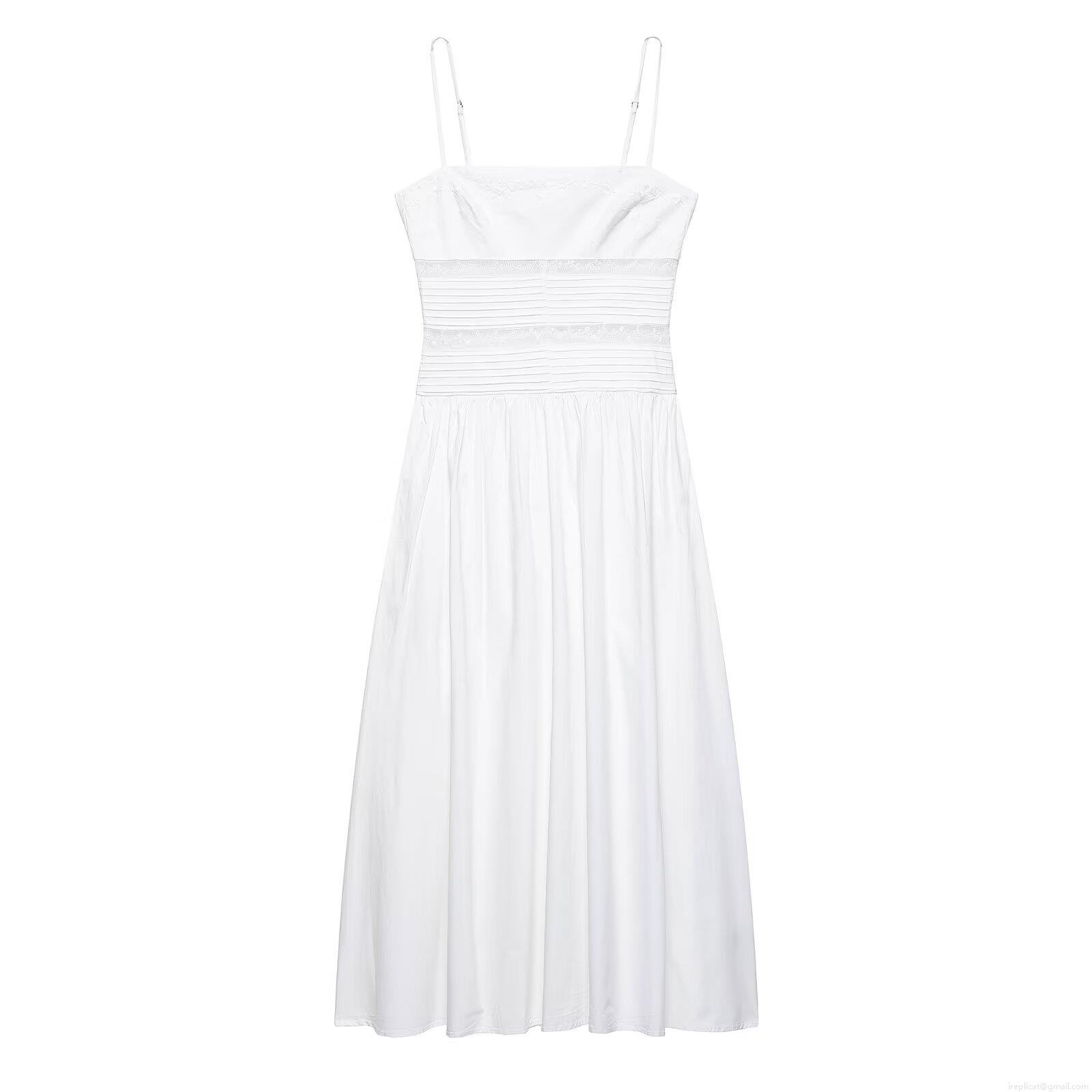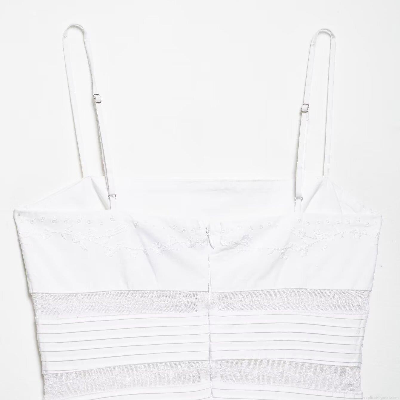 • Elegant White Spaghetti Strap Maxi Dress With Lace Embroidery And Pleated Design Sleeveless Backless Summer Vacation Party Dress For Women