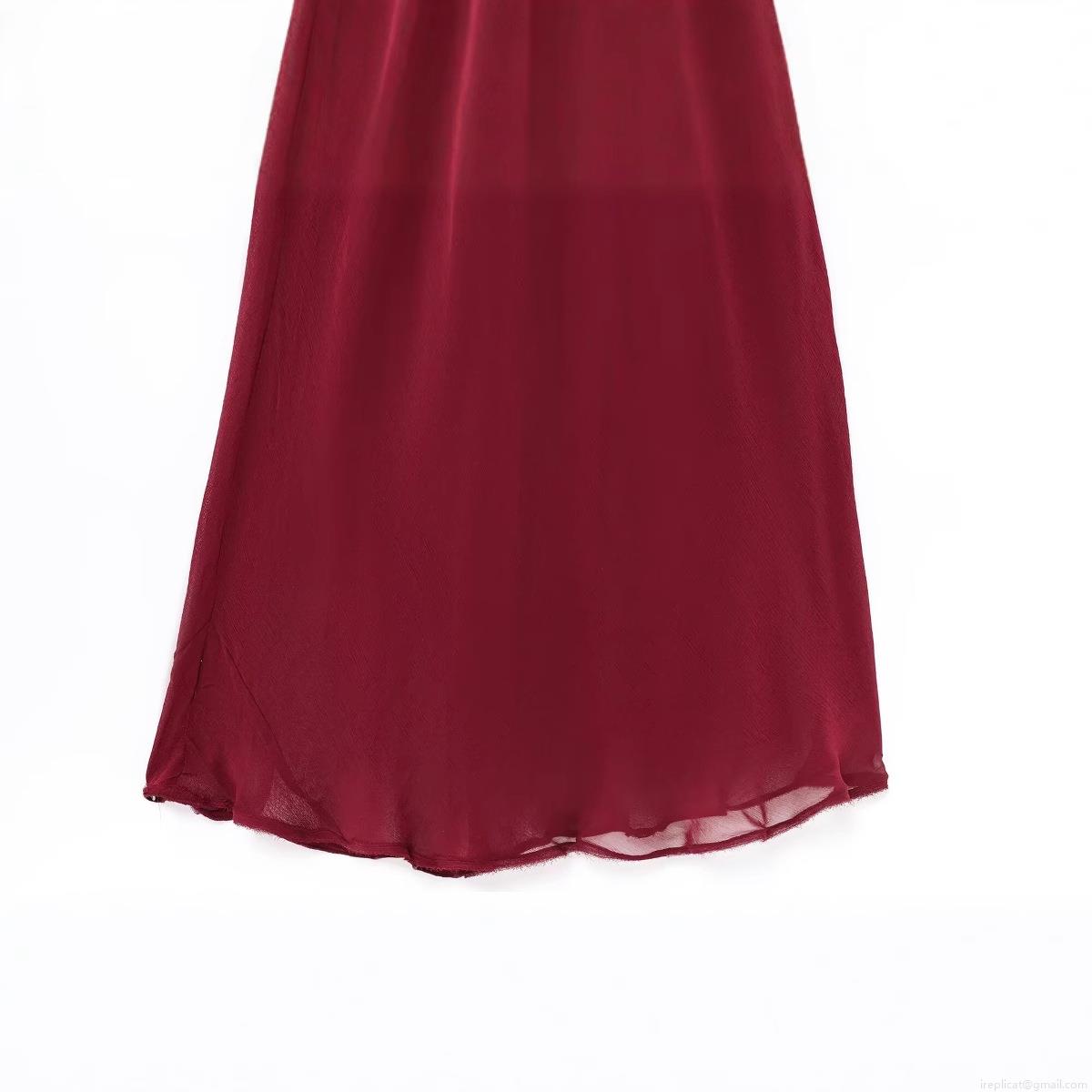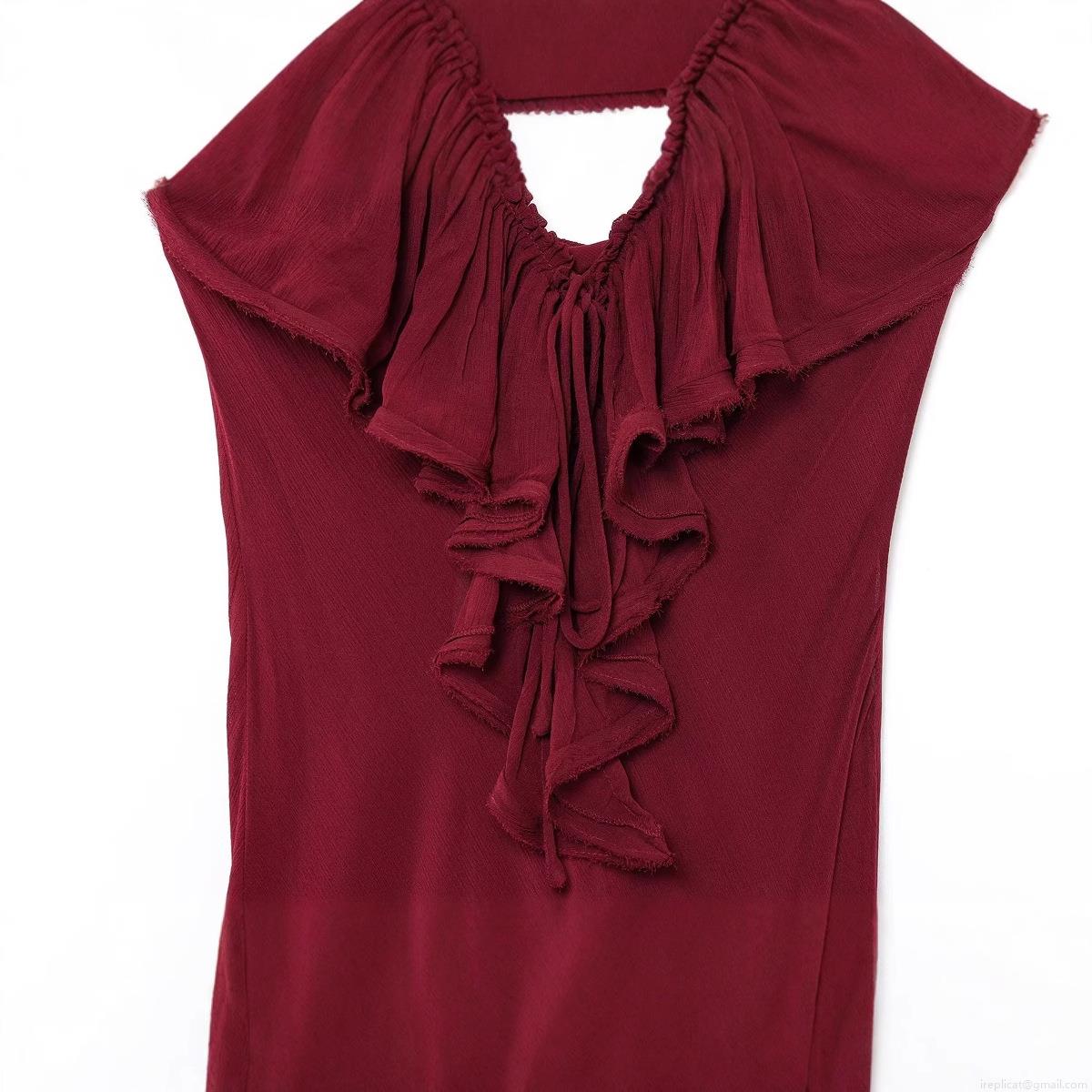 • Elegant Wine Red Chiffon V-Neck Maxi Dress For Women Sexy Spaghetti Strap Ruffle Trim Pleated Evening Party Wedding Guest Long Dress