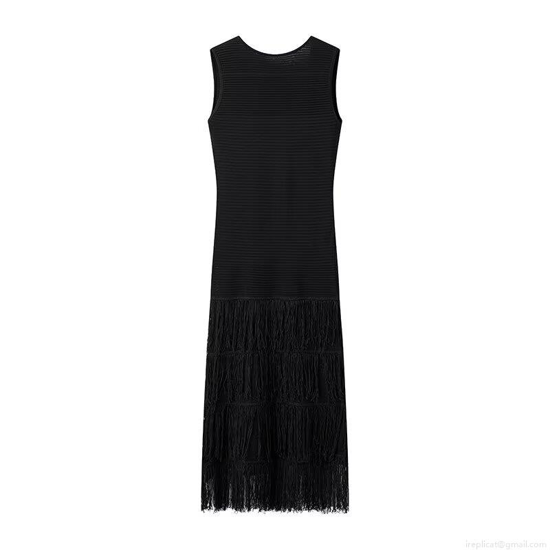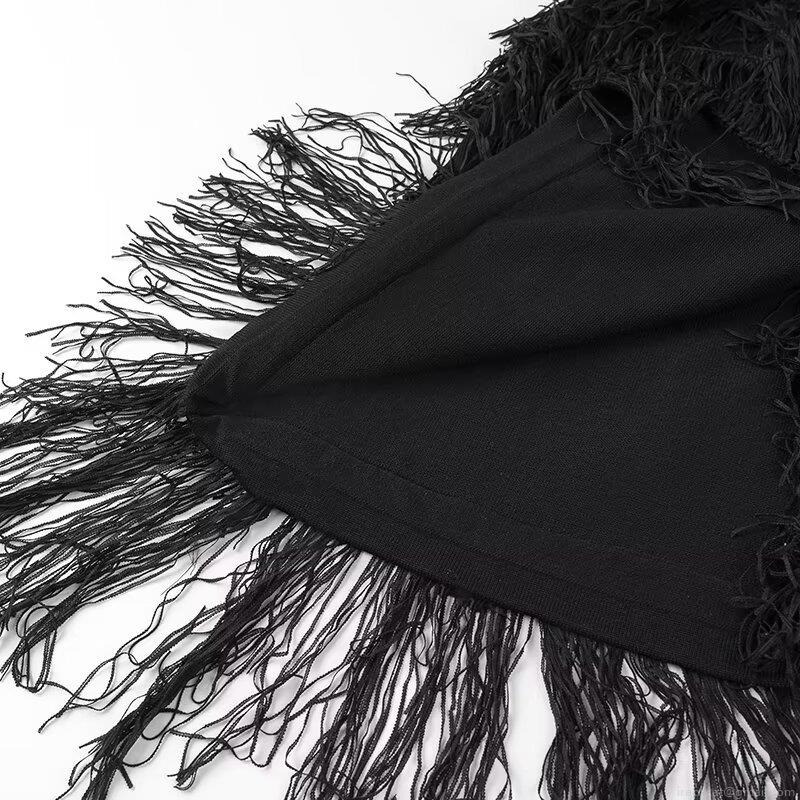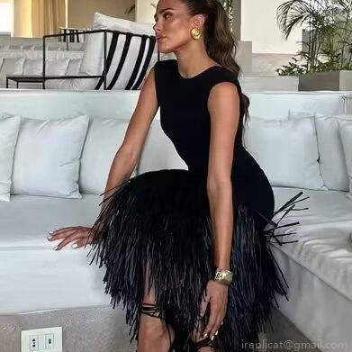 • Elegant Women Black Knit Polyester Maxi Dress Sexy Backless Sleeveless Bodycon Long Dress With Fringe Feather Trim Party Banquet Evening Gown