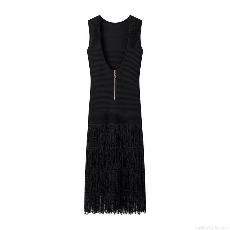 Elegant Women Black Knit Polyester Maxi Dress Sexy Backless Sleeveless Bodycon Long Dress With Fringe Feather Trim Party Banquet Evening Gown