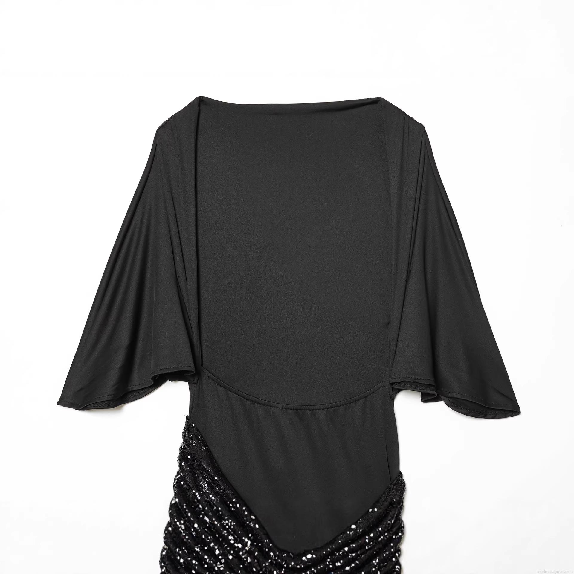 Solid Color, Asymmetric, Sequin Decoration, Batwing Sleeves