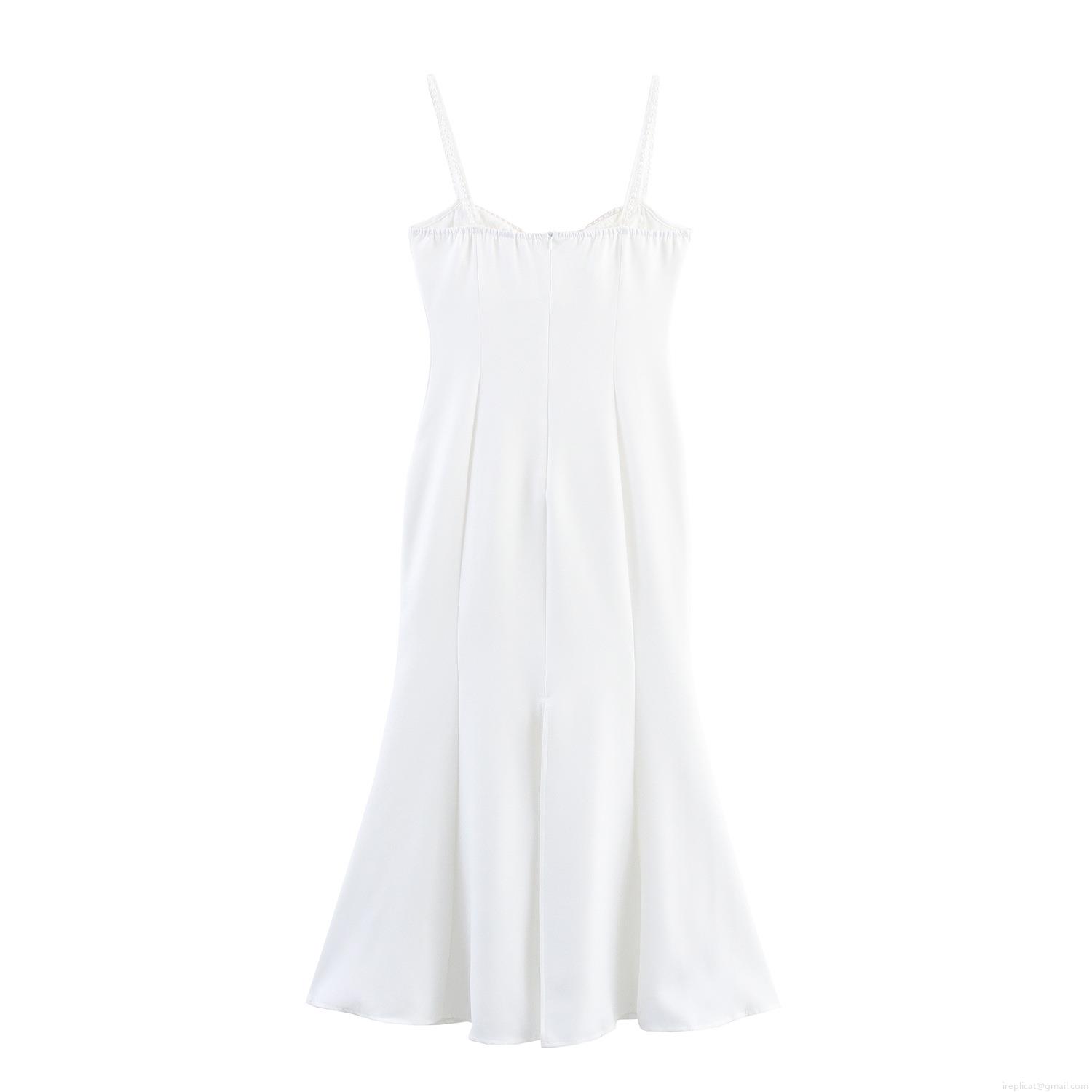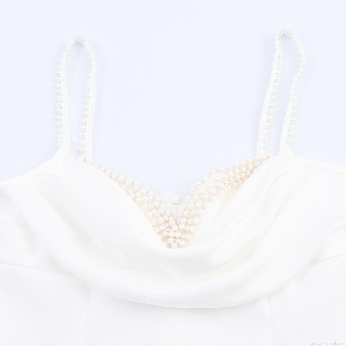 • Elegant Women Cowl Neck Pearl Strap Maxi Dress White Polyester Satin Slim Fit Fishtail Long Dress For Wedding Party Banquet Evening Socialite Formal Occasion
