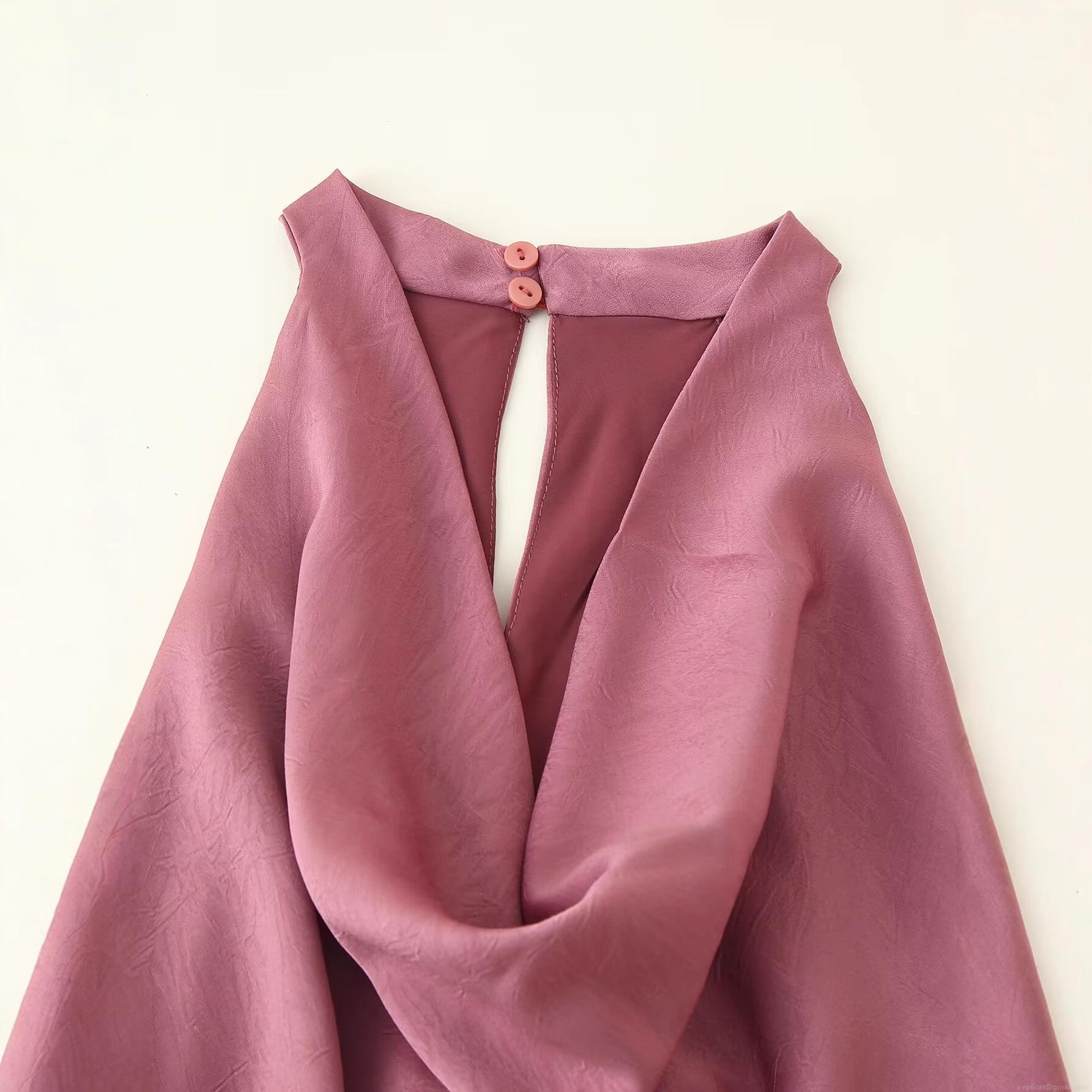 Solid Color, Splice, Pleats, Neckband, Backless, Dangling