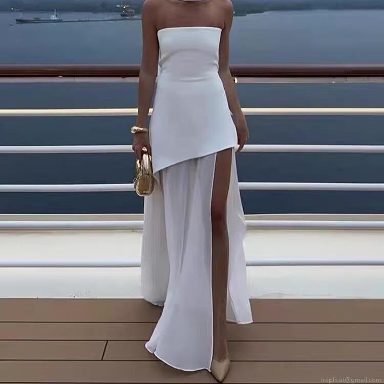 Solid Color, Splice, Neckband, Backless, Strapless, Slit, Irregular Hem