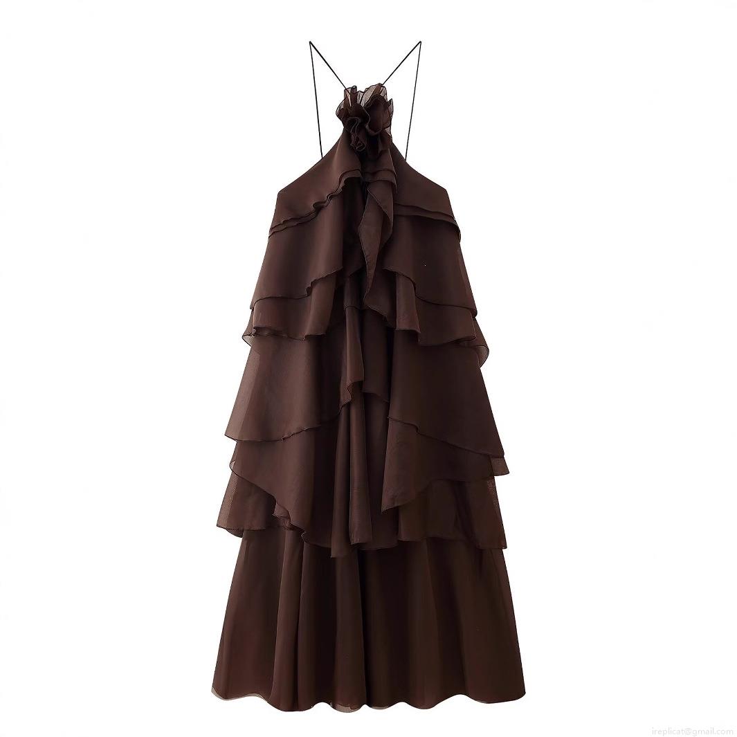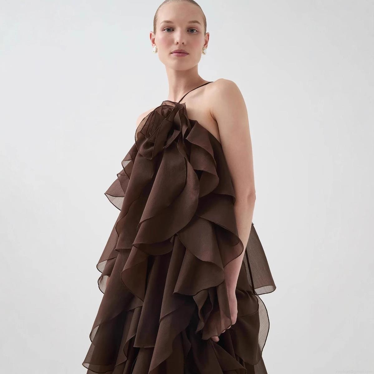 Ruffles, Neckband, Backless, 3d Flowers, Layered Cake Skirt, Three-dimensional Floral Decorations