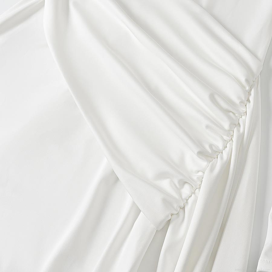 • Elegant Women Off Shoulder Asymmetric Ruched Maxi Dress Sexy Long Sleeve Bodycon Polyester Evening Party Streetwear Solid Color White Long Dress