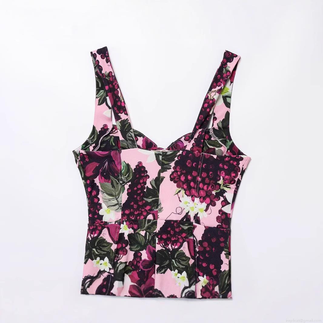 Grape, Berry, Floral Pattern, Flowers, Printing, Suspenders, Heart-shaped Neckline, Fishtail, Wide Wave Swing