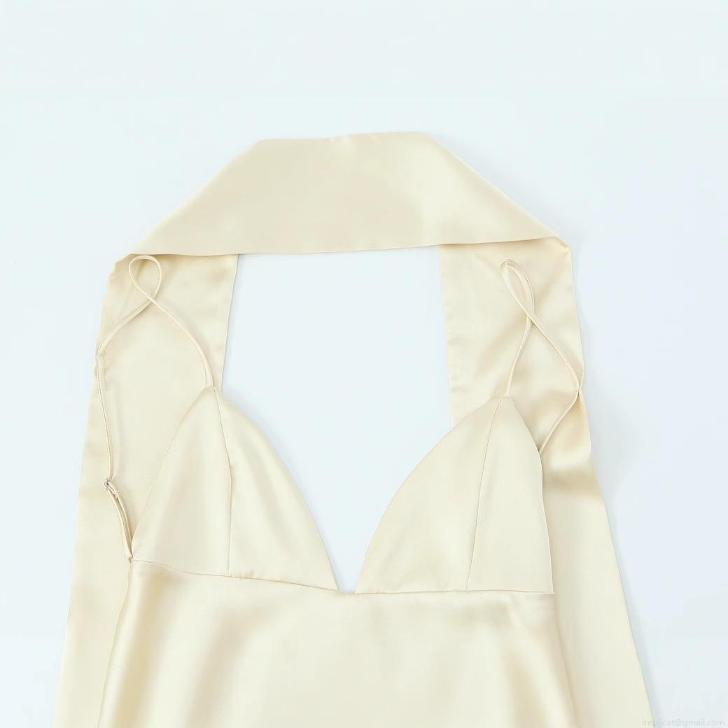 Solid Color, Satin, Neckband, Backless, Deep V
