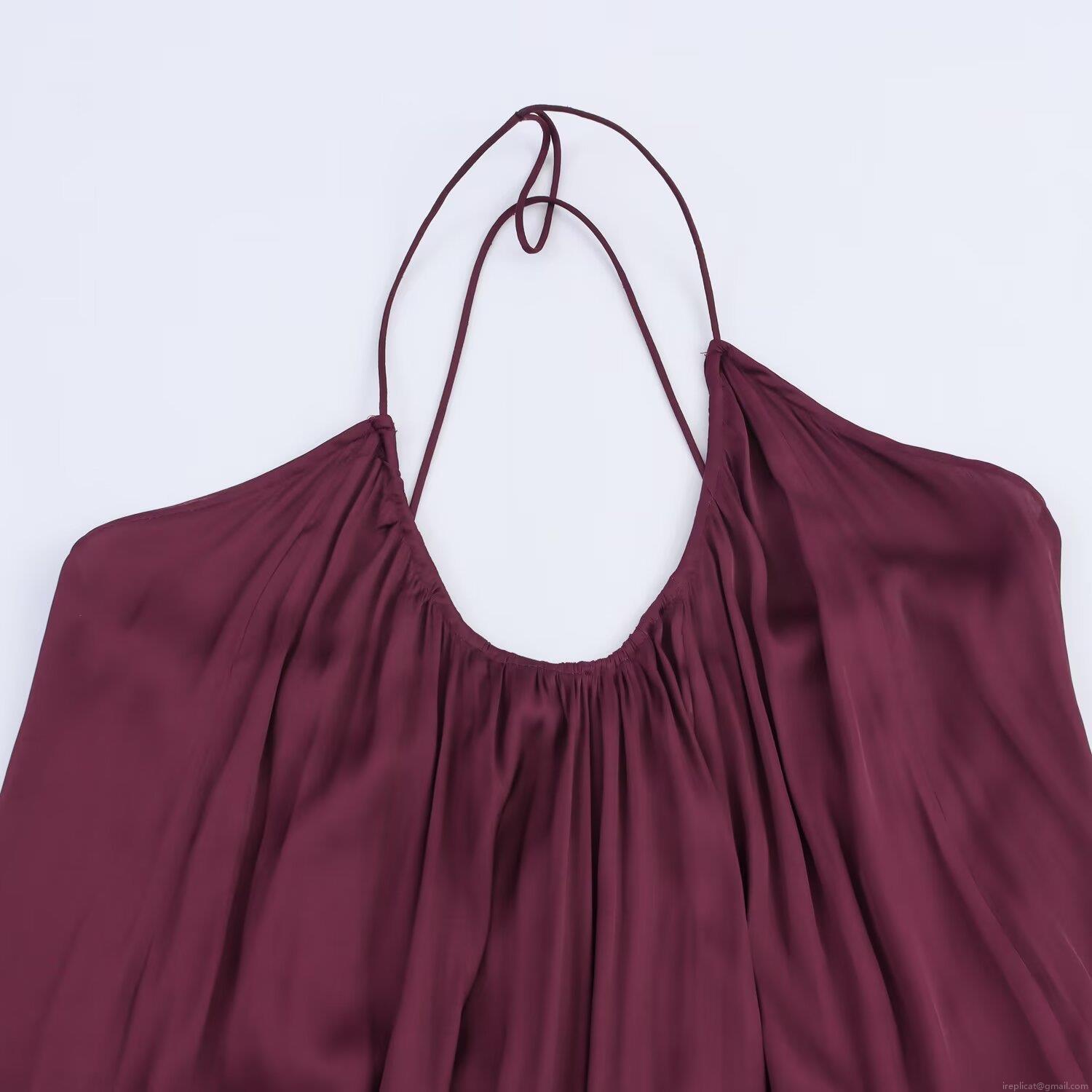 • Elegant Women Sexy Backless Satin Maxi Dress Pleated V-Neck Spaghetti Strap Evening Party Long Slip Dress Polyester Silk Texture Slim Fit Burgundy