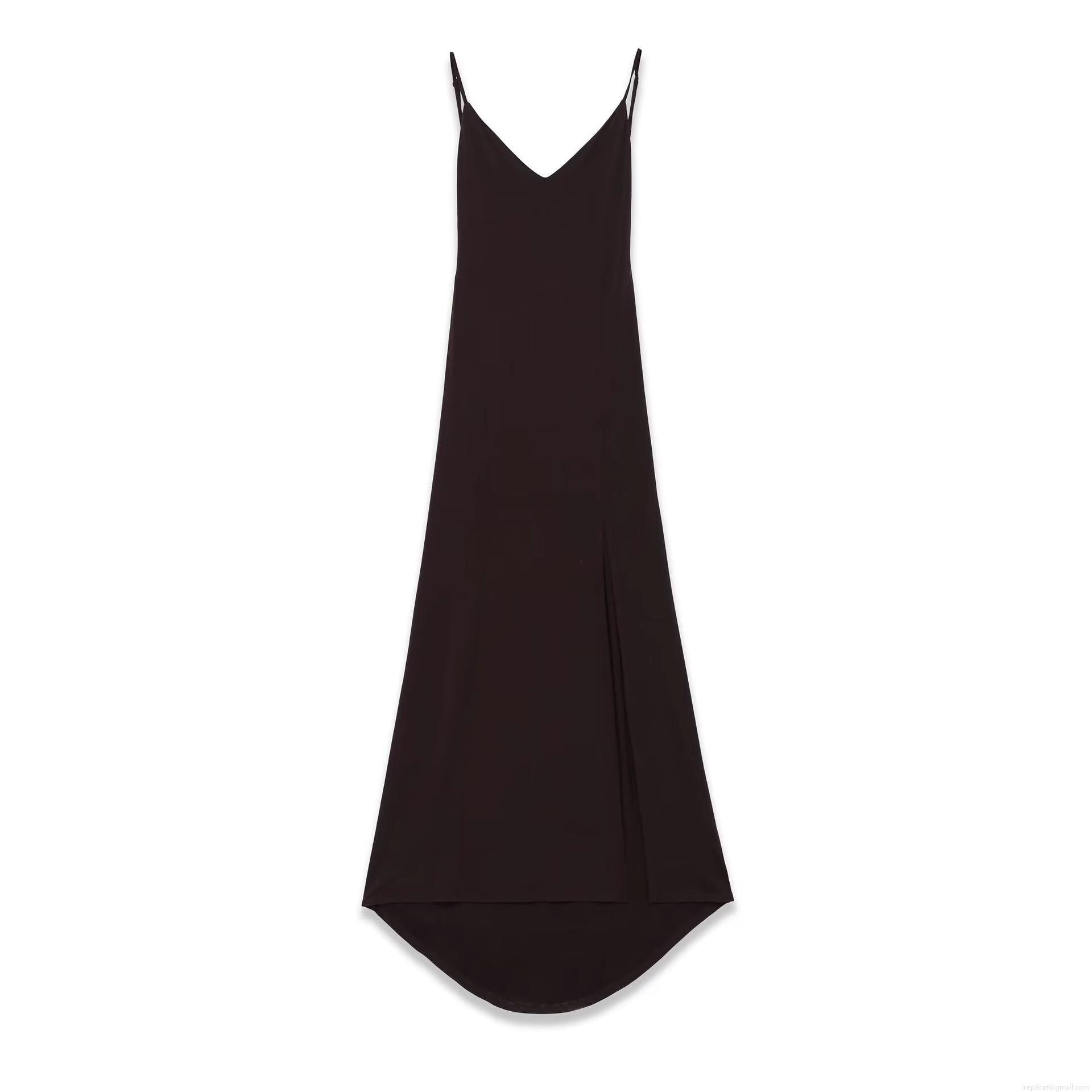Elegant Women Sexy Deep V-Neck Backless Maxi Dress Elastic Polyester Sleeveless Sling High Slit Solid Color Long Evening Party Prom Dress