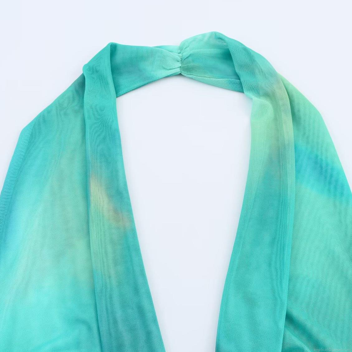Gradient, Smudge, Printing, Neckband, V-neck, Backless