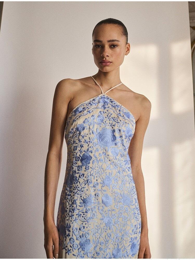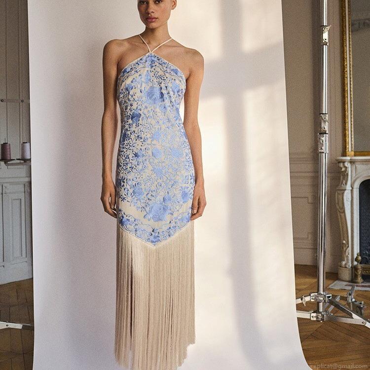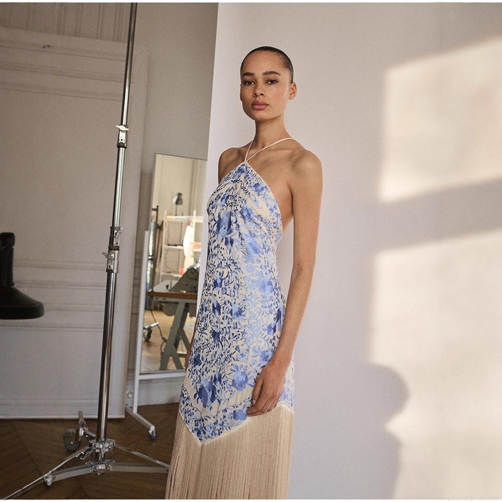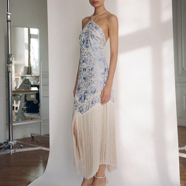• Elegant Women's Halter Neck Backless Maxi Dress Retro Floral Print Fringe Splicing Sleeveless Bodycon Long Dress For Party Clubwear Vacation Summer Polyester Outfit