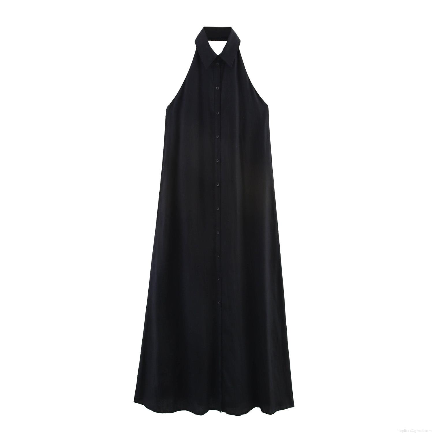 • Elegant Womens Halter Neck Linen Maxi Dress Sexy Backless Button-Down A-Line Long Sundress For Summer Vacation Daily Casual Wear