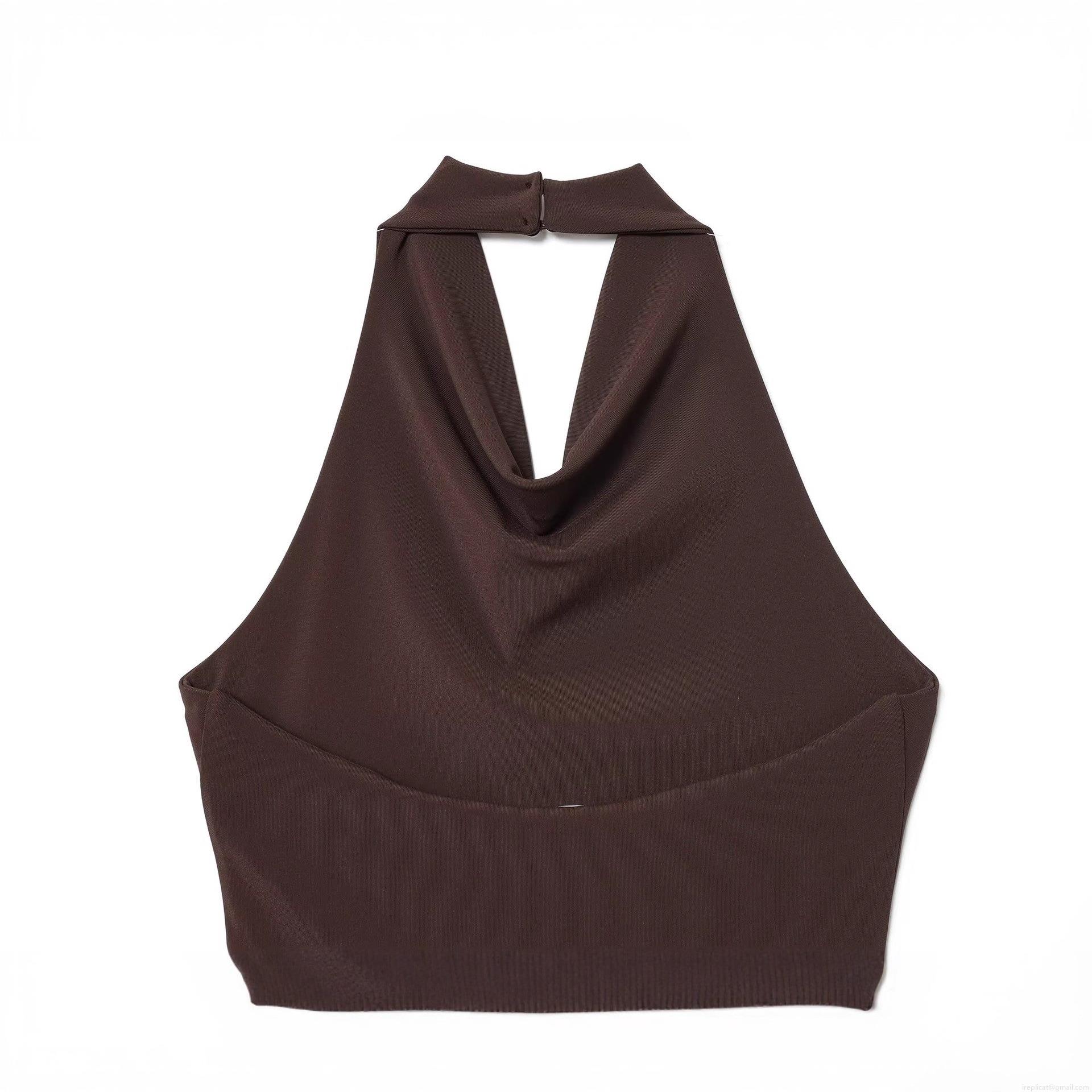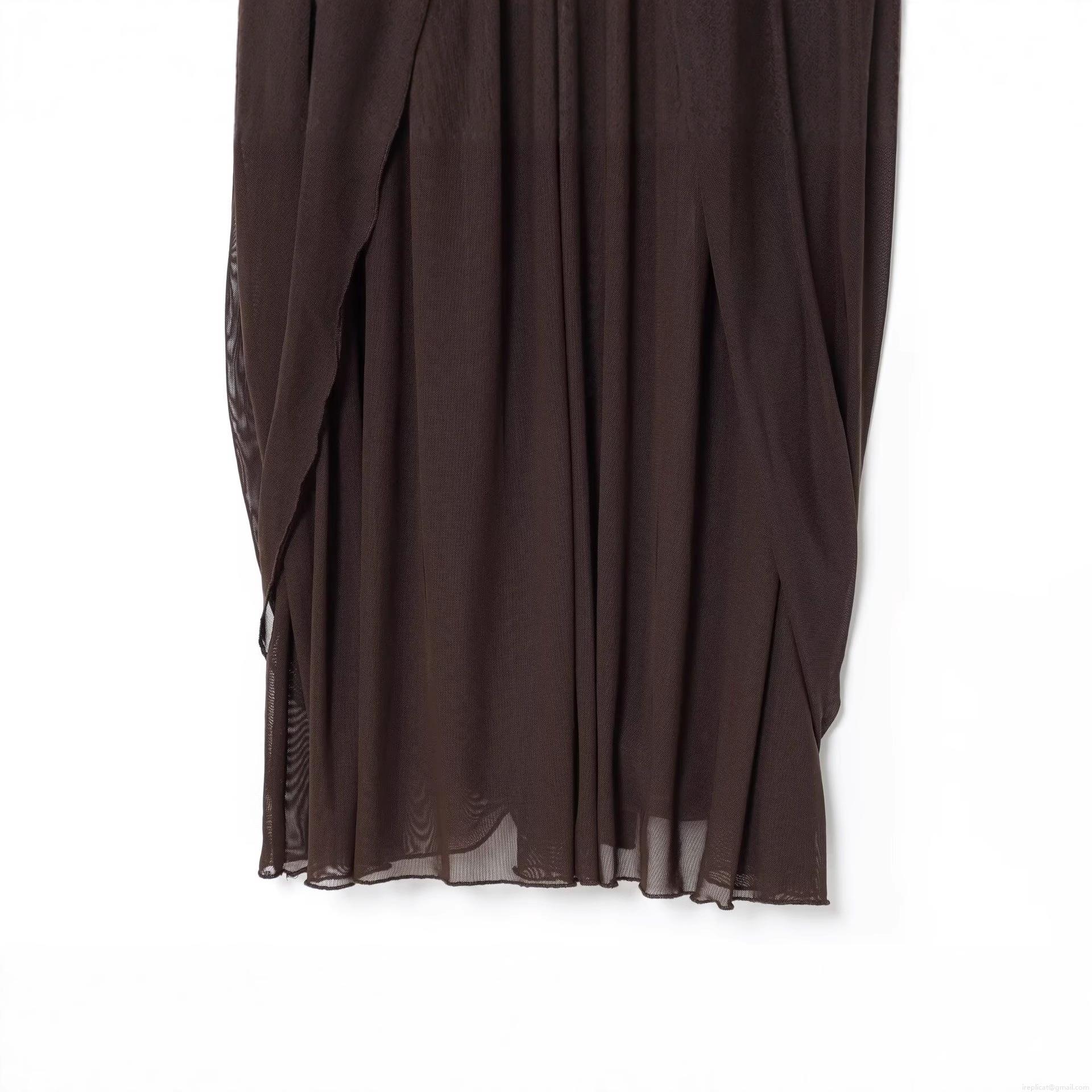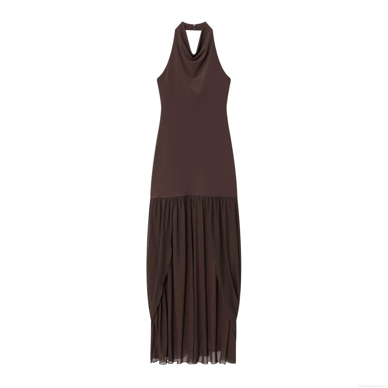 • Elegant Women's Halter Neck Maxi Dress Sexy Backless Polyester Mesh Patchwork Pleated Long Dress For Party Evening Wedding Socialite Style Solid Color Coffee