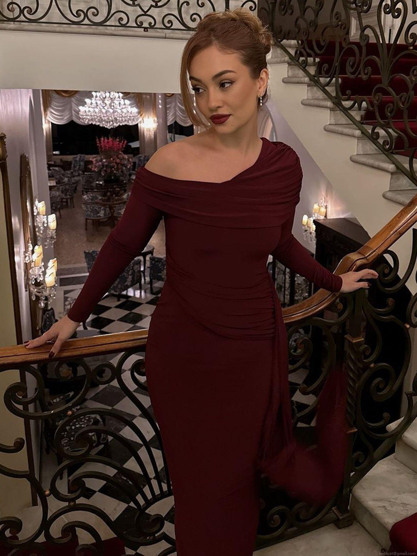 • Elegant Women's One Shoulder Long Sleeve Maxi Dress Solid Color Pleated Slim Fit Bodycon Evening Party Gown With Ribbon Detail Polyester Spandex Mix