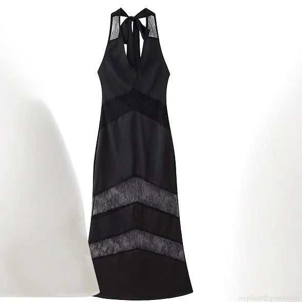 • Elegant Women's Satin and Lace Patchwork Maxi Dress Halter V-Neck Backless Sleeveless Evening Party Wedding Guest Long Dress With Bow