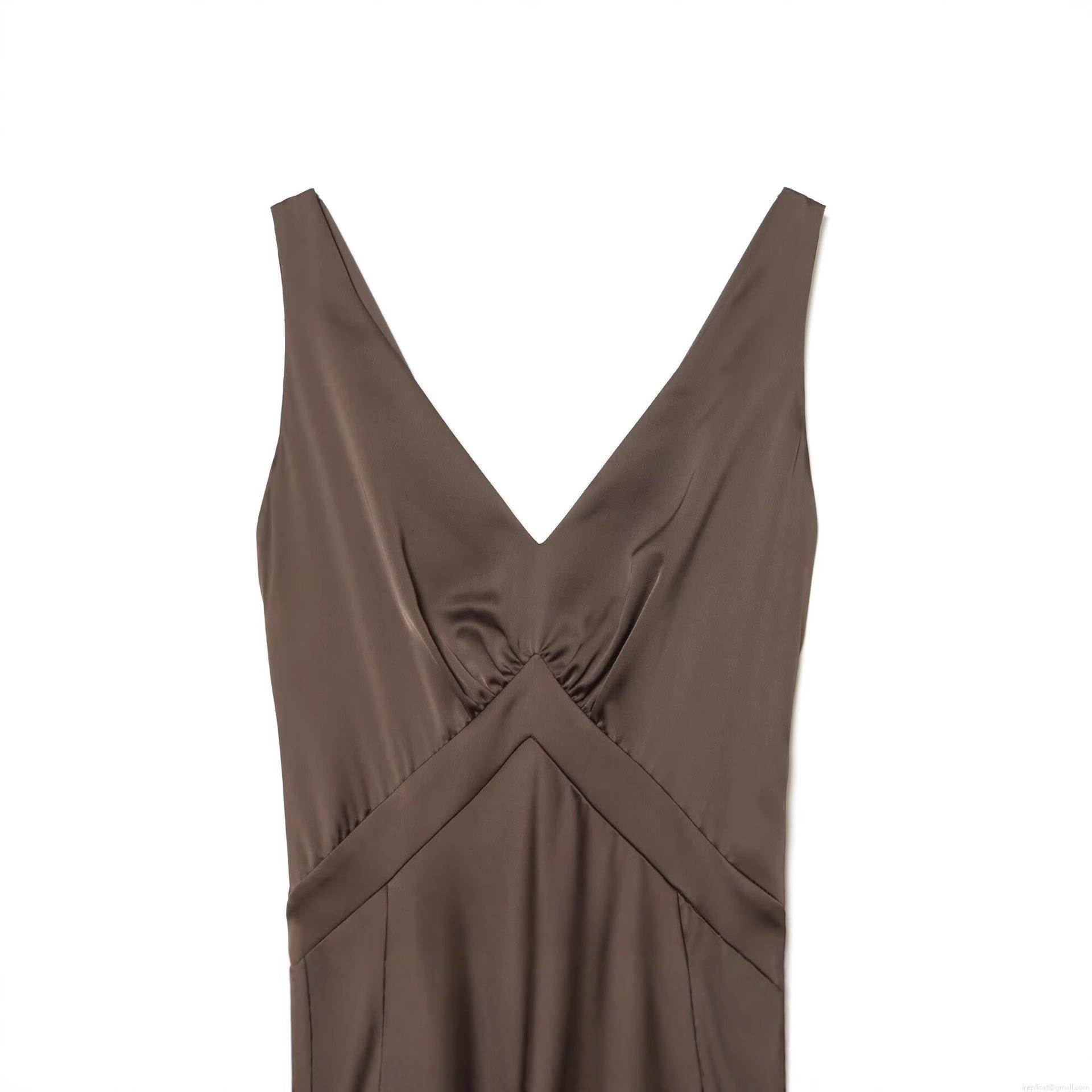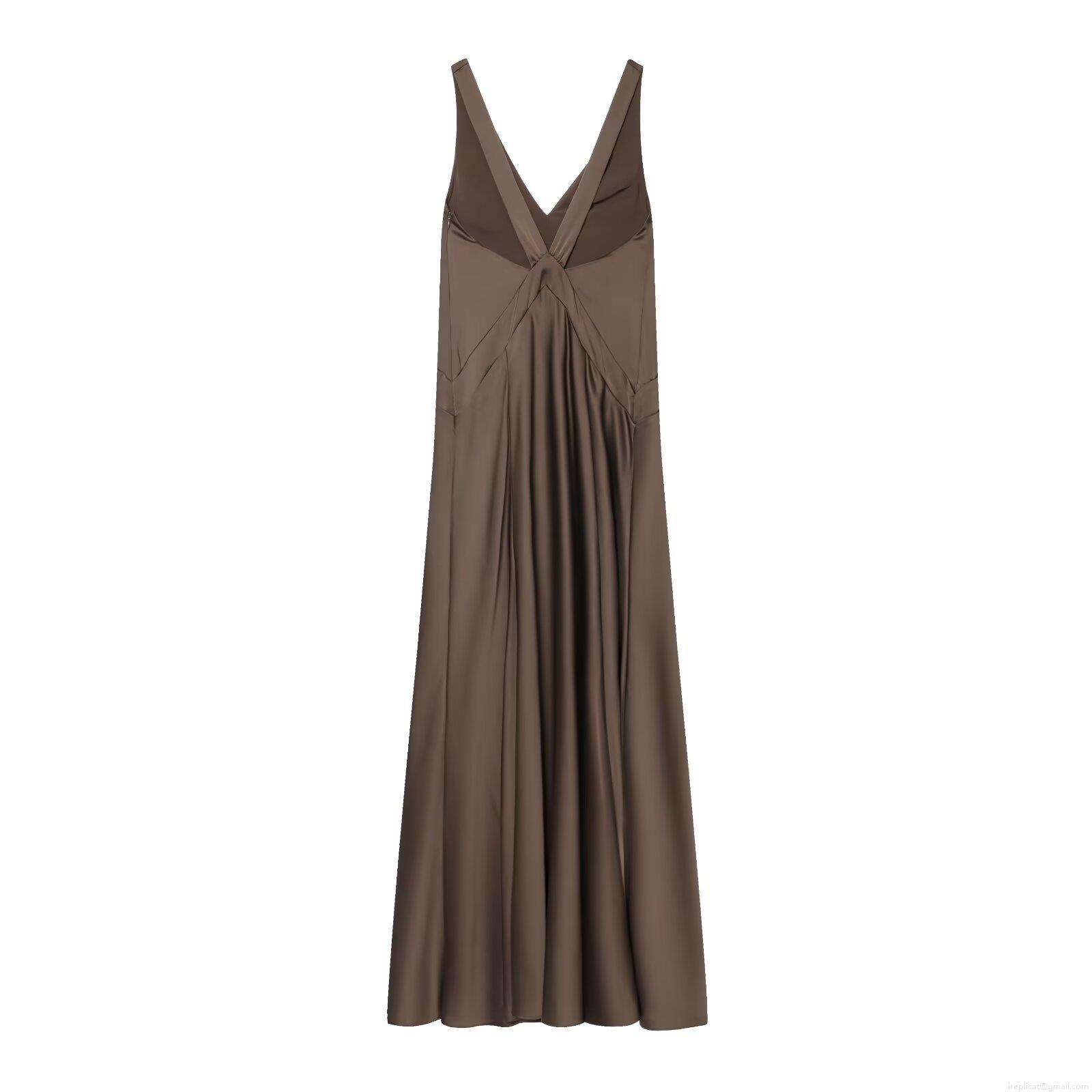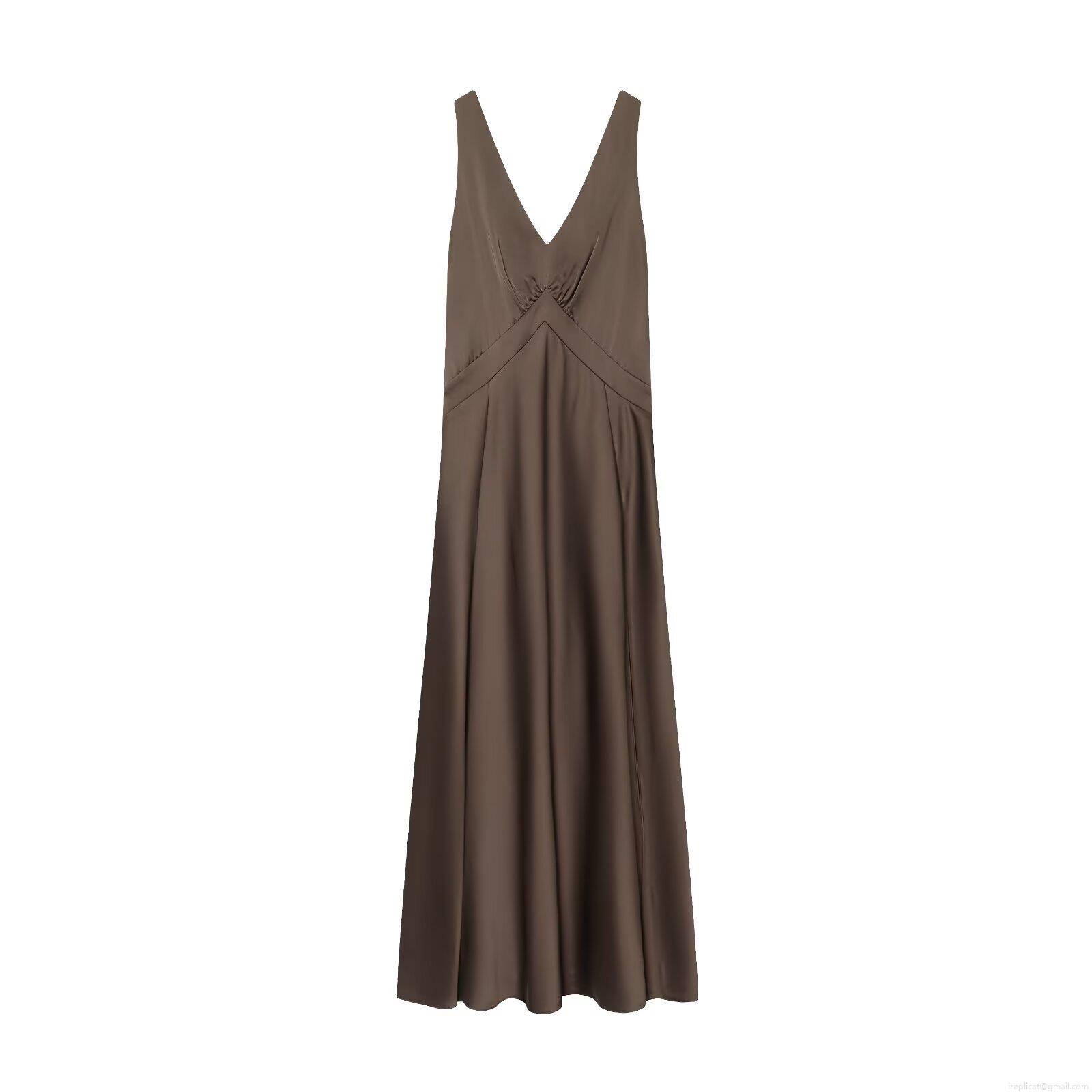 • Elegant Women's Satin Maxi Dress Sexy Deep V-Neck Backless Cross Bandage Long Dress For Evening Party Wedding Guest Coffee Brown Polyester Slinky Bodycon Gown