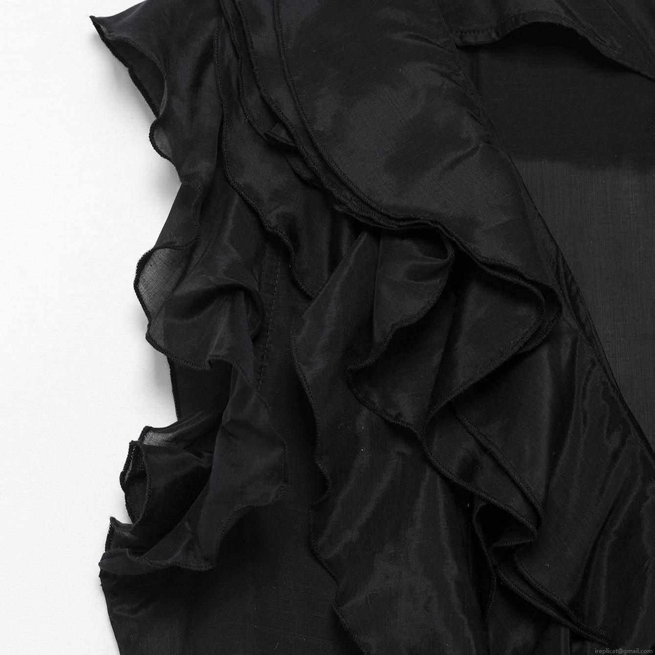 • Elegant Women's Sleeveless V-Neck Maxi Dress Romantic Polyester Ruffle Trim Irregular Hem Solid Color Vacation Style Black Long Sundress