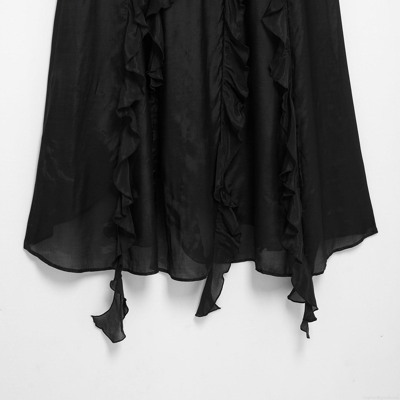 Elegant Women's Sleeveless V-Neck Maxi Dress Romantic Polyester Ruffle Trim Irregular Hem Solid Color Vacation Style Black Long Sundress