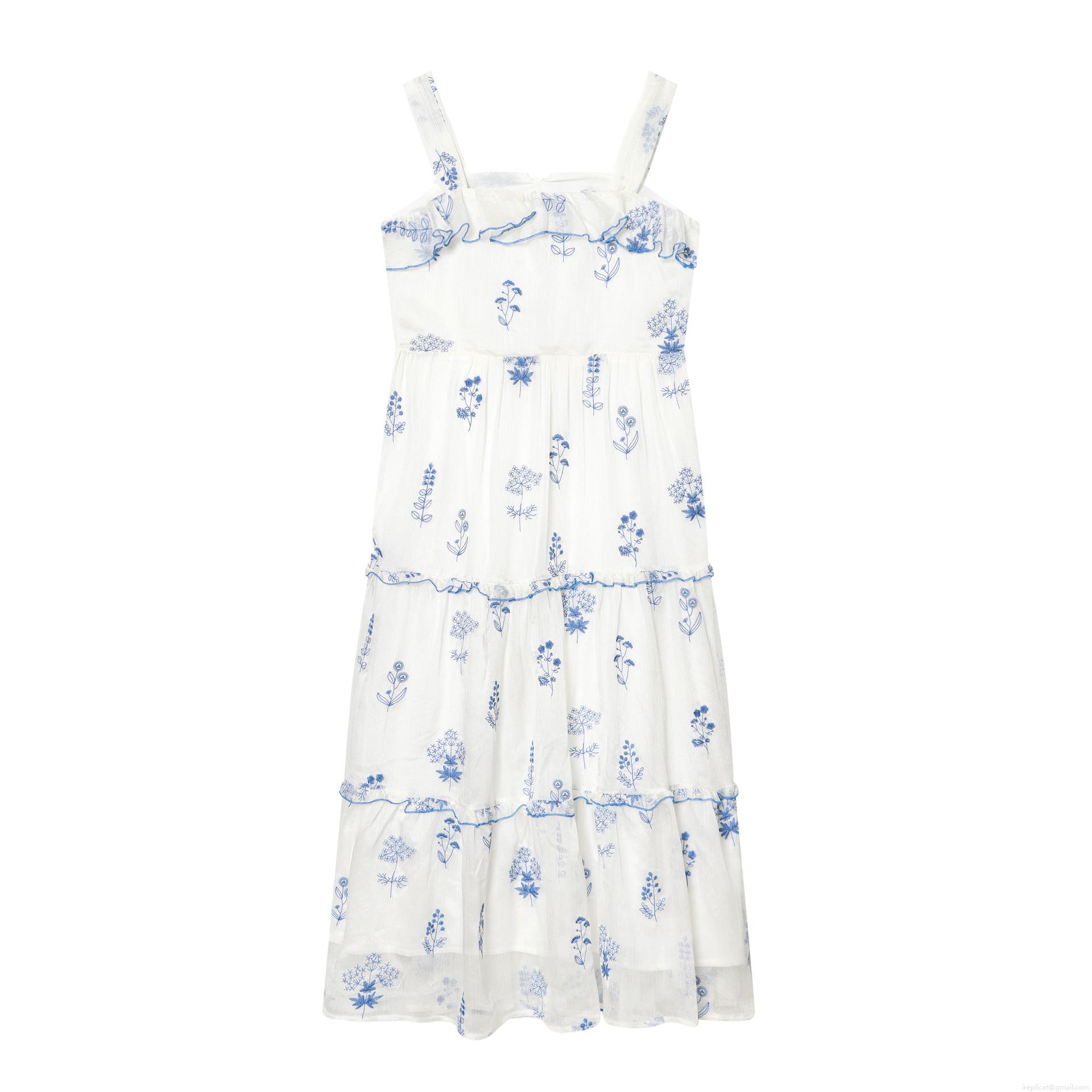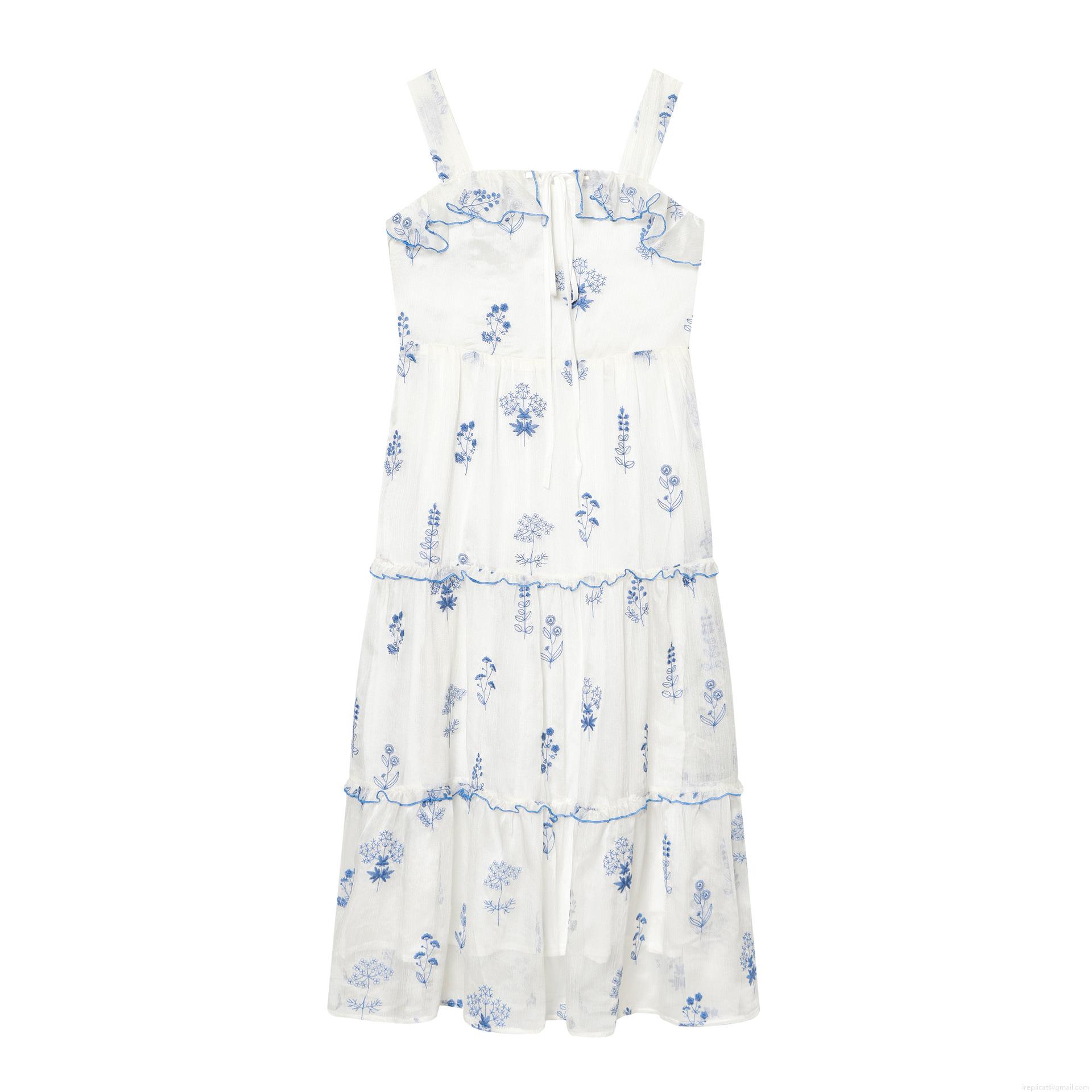 • Embroidered Floral Tiered Maxi Dress 100% Polyester Ruffle Trim Off-Shoulder Sleeveless Camisole Long Dress For Women Summer Vacation Pastoral Style