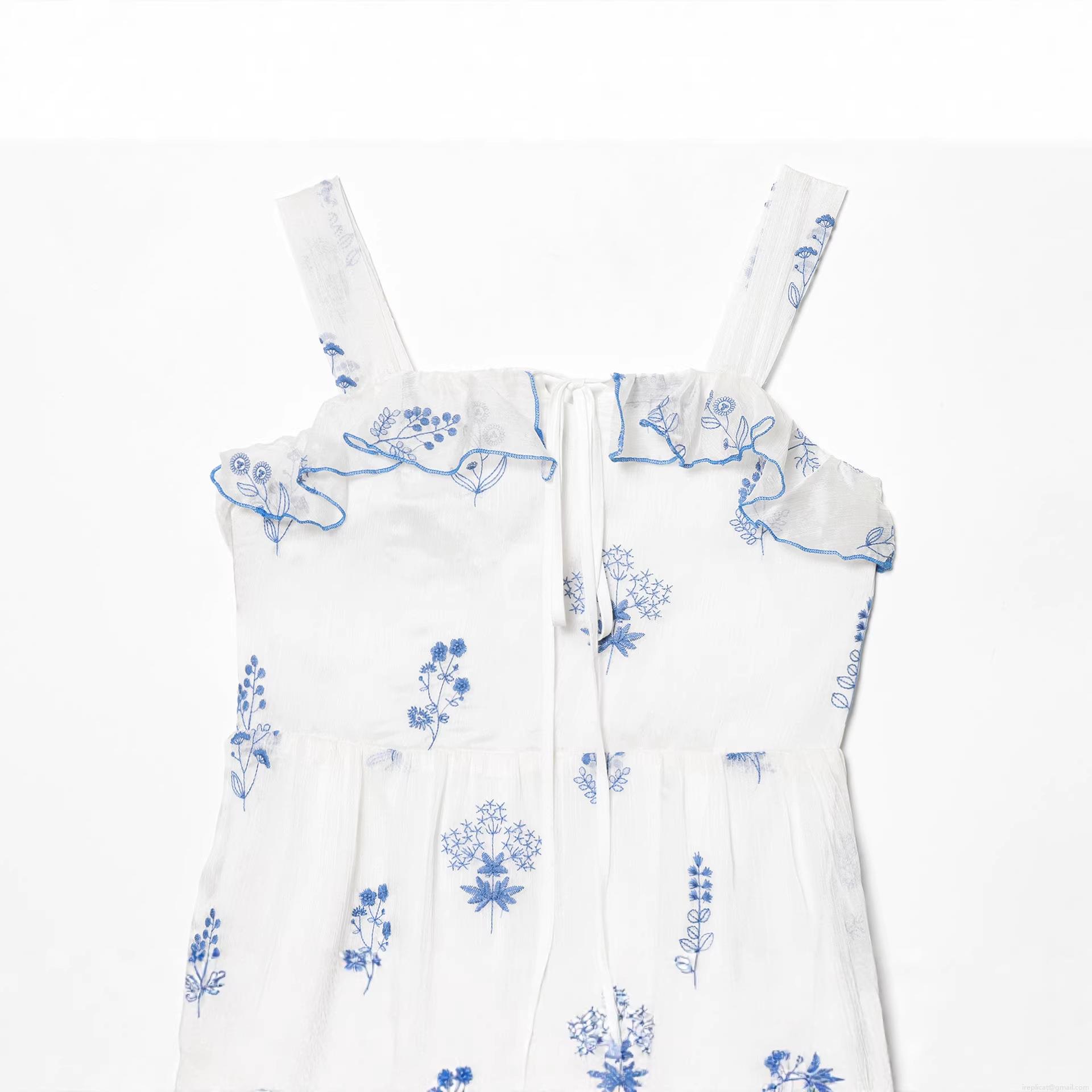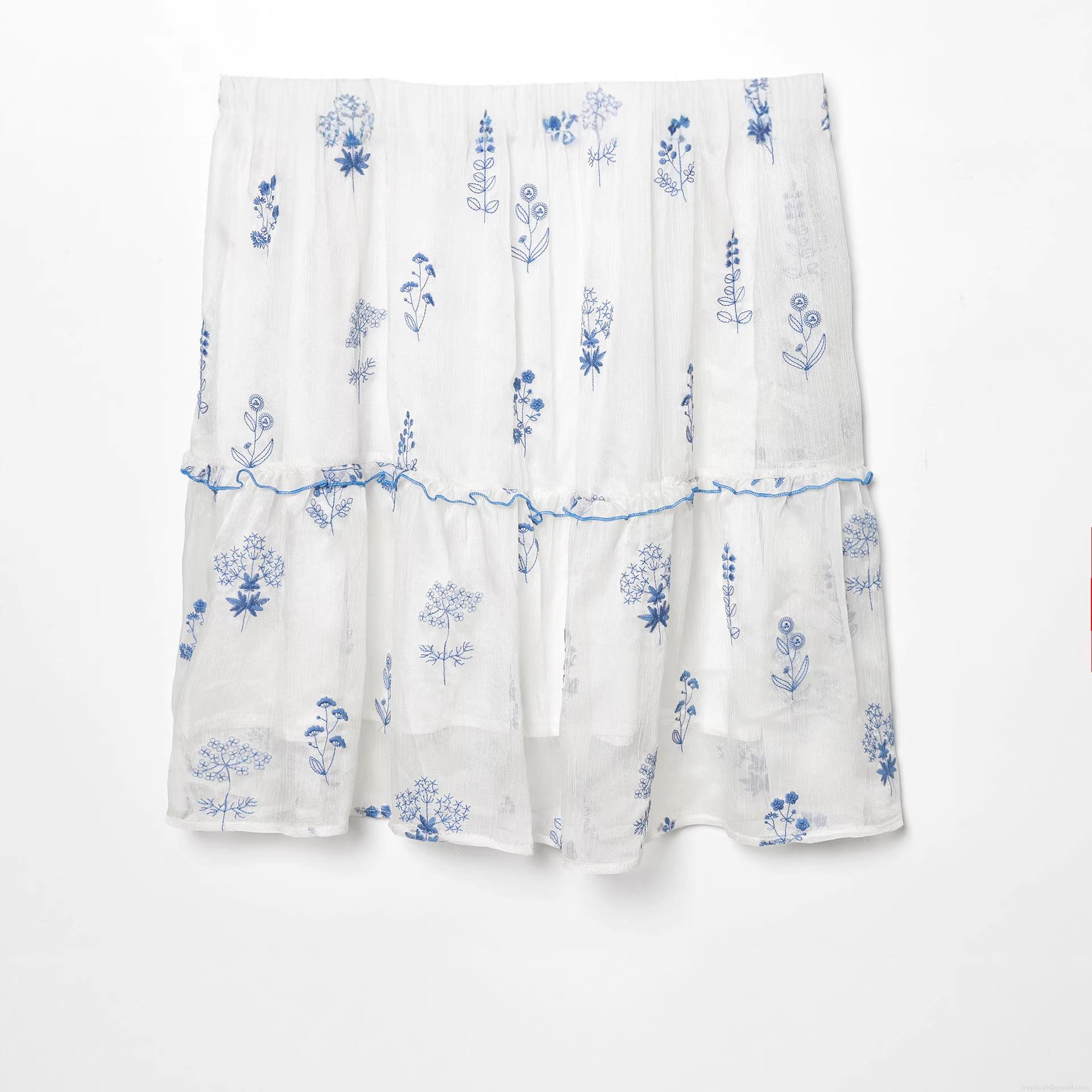 Embroidery, Wildflowers, Ruffles, Off-shoulder, Multi-tiered Cake Skirt, Floral Prints