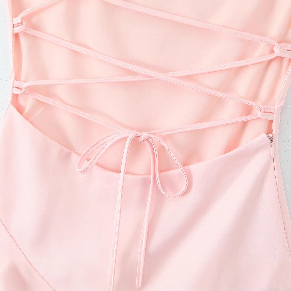 Solid Color, Backless, Cross Straps, High Slit, Irregular Ruffles