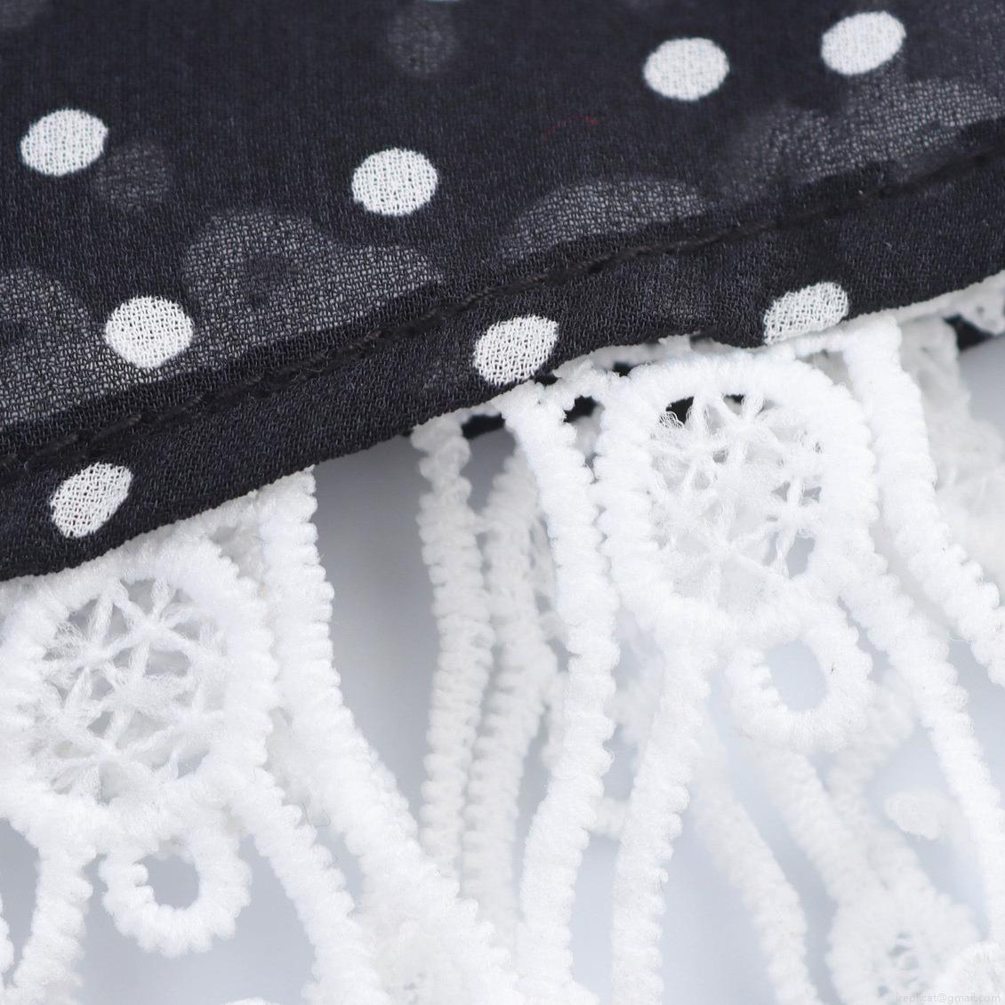 Polka Dots, Bow, Lace Trim, Lace, Puff Sleeves, Square Collar