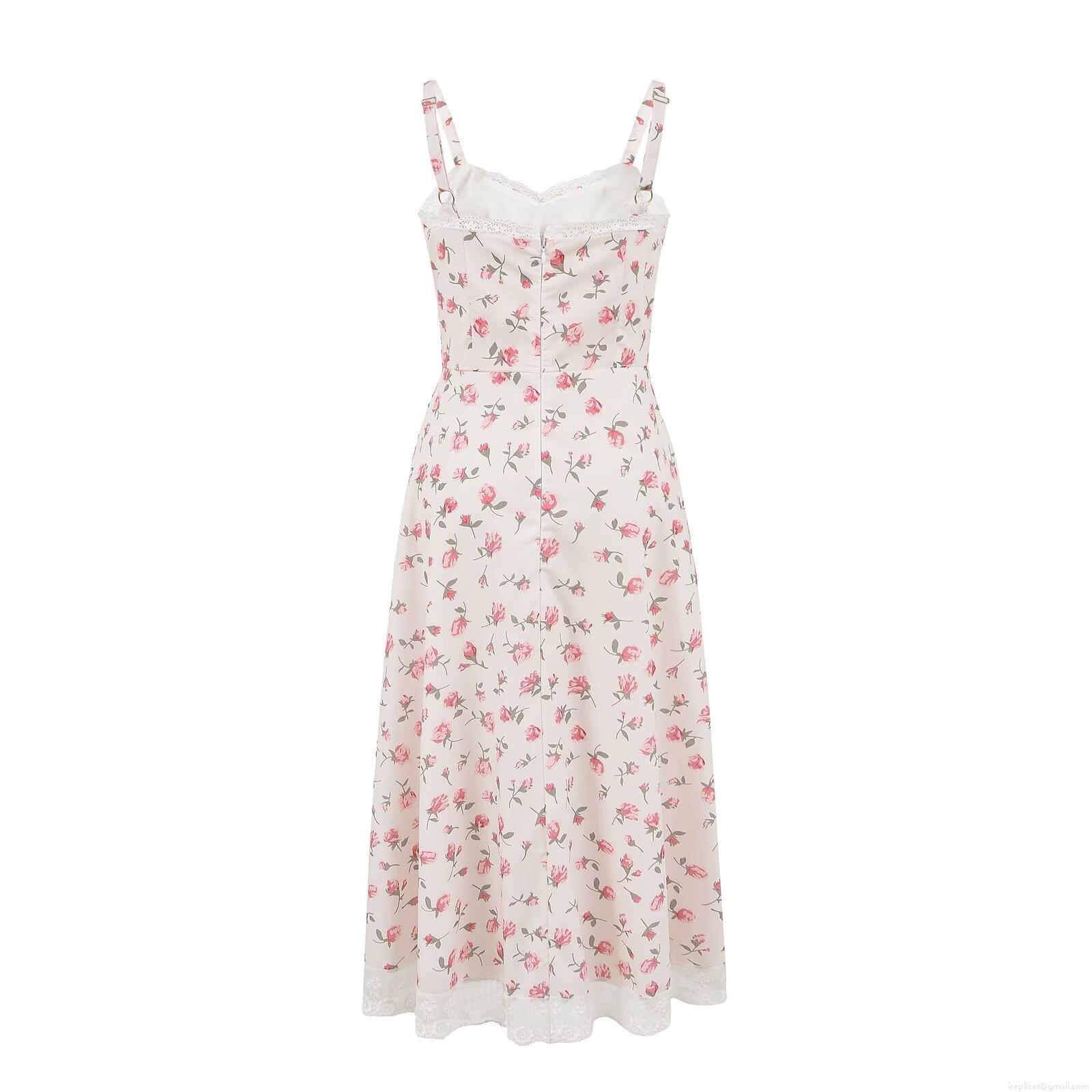 • French Style Floral Maxi Dress Lace Splicing Cami Slip Dress For Women Sweet Rose Print Spaghetti Strap Long Dress Elegant Party Vacation Streetwear