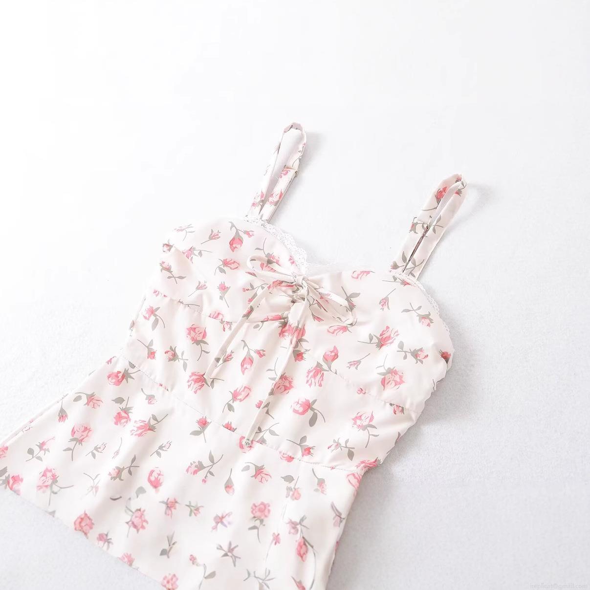 Floral Pattern, Collage, Rose, Lace Trim, Bow Tie, Adjustable Thin Shoulder Straps