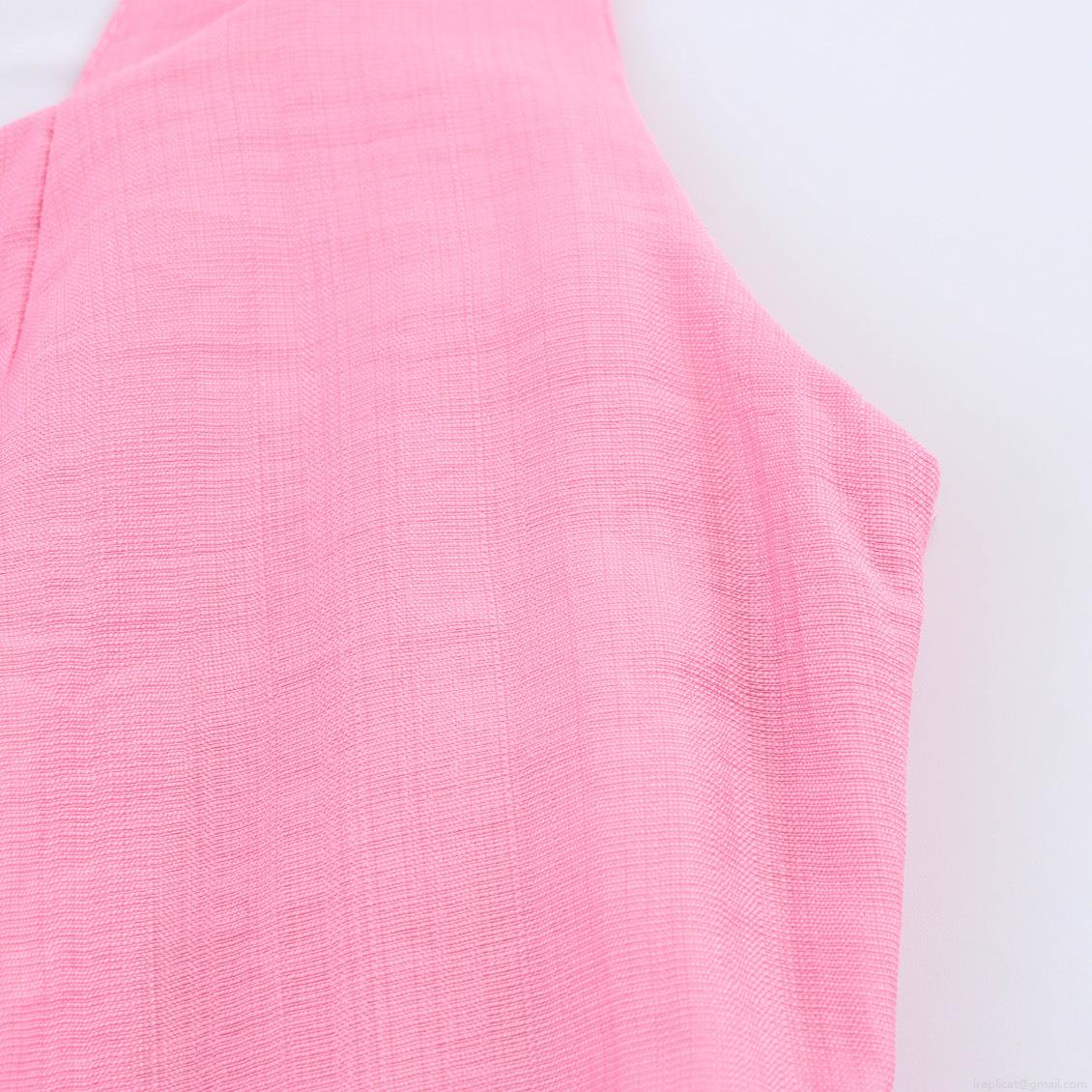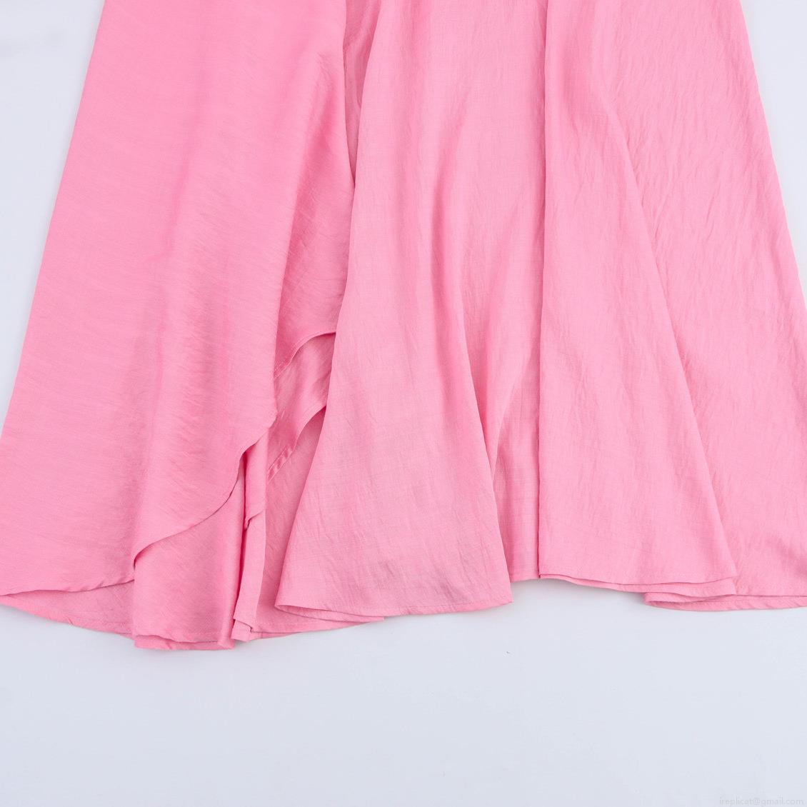 • French Style Pink Women Spaghetti Strap Maxi Dress Elegant High Waist Irregular Hem A-Line Dress For Summer Vacation Party Women Clothing
