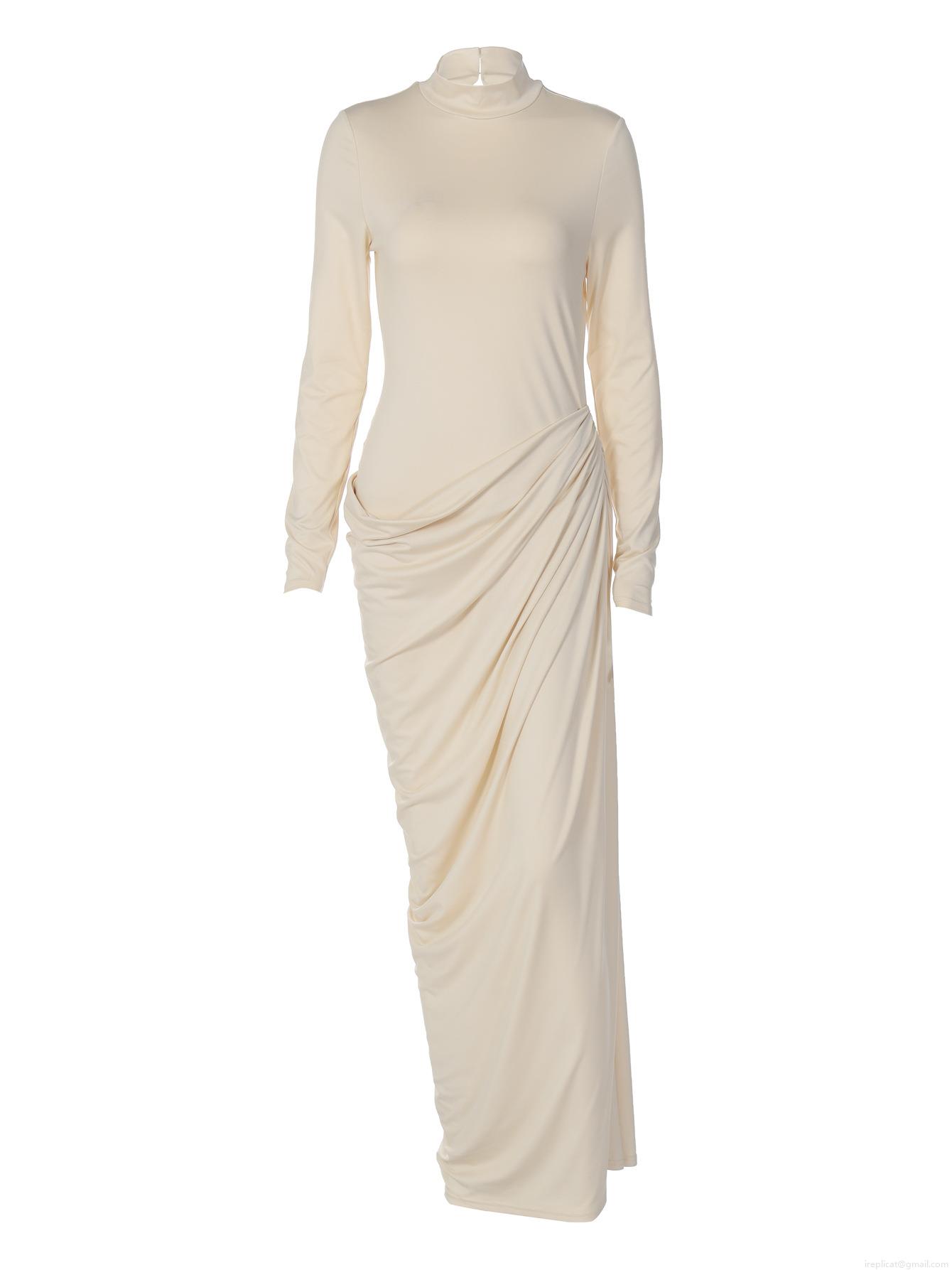 • French Style Sexy Backless Ruched Maxi Dress For Women Polyester Spandex High Neck Long Sleeve Slim Fit Evening Party Clubwear Bodycon Long Dresses